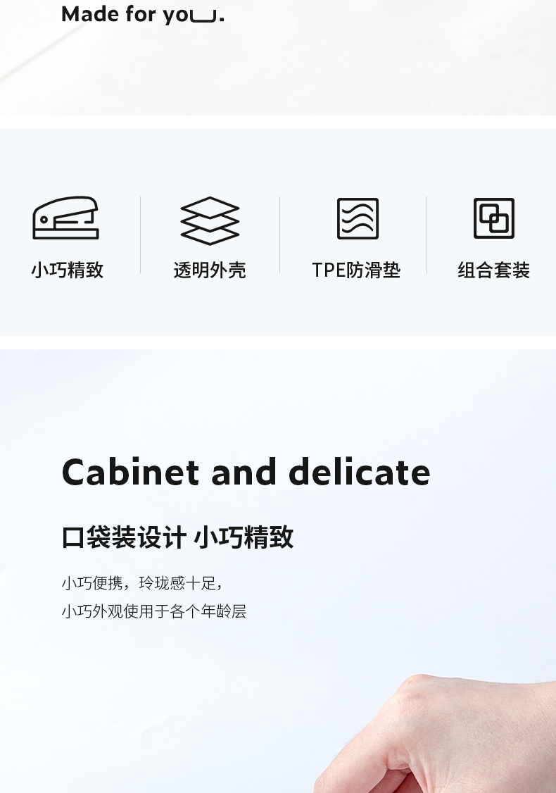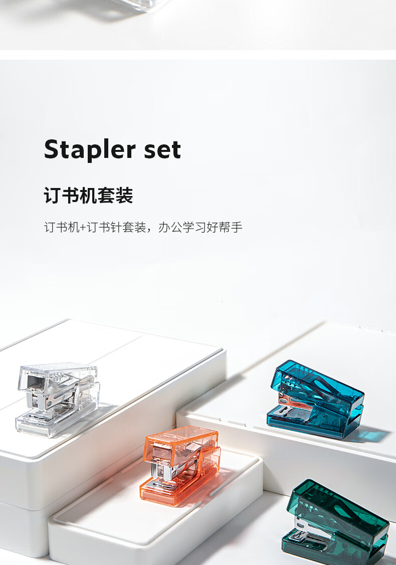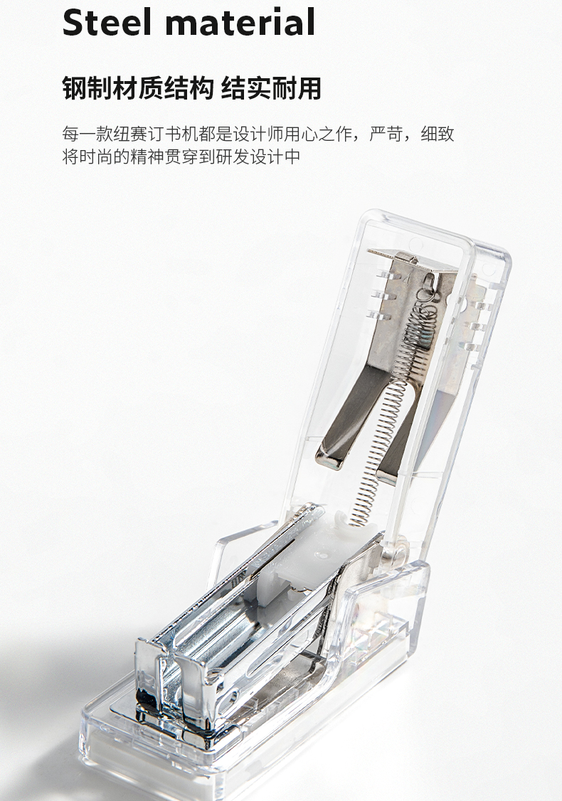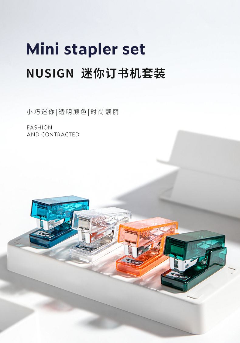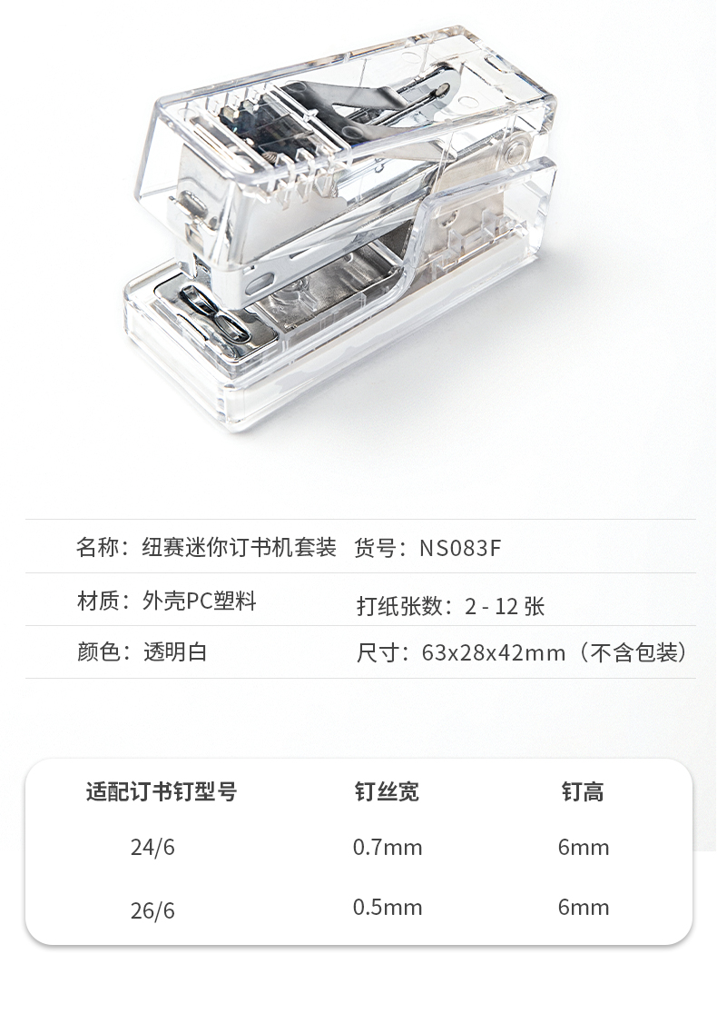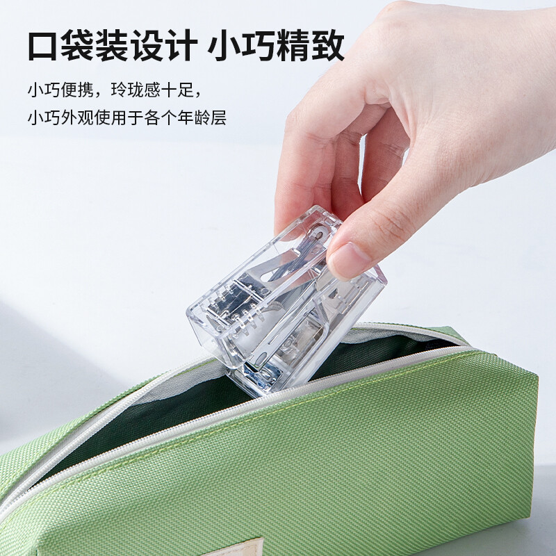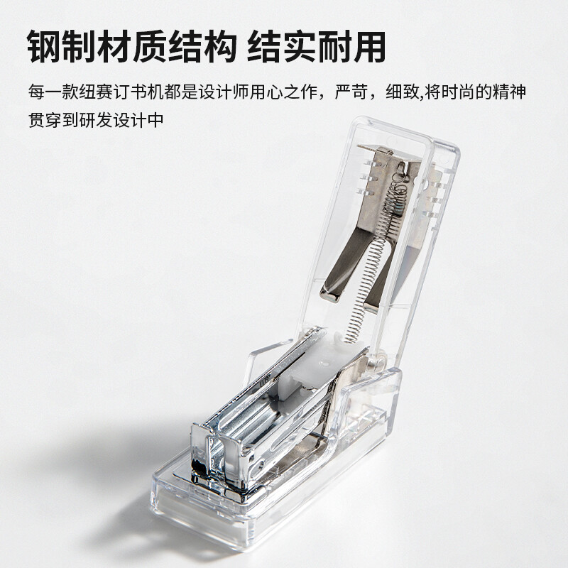 得力纽赛(NUSIGN)透明迷你订书机(订书器+订书钉)口袋装学生办公轻巧便携透明订书器组合小号 透明 NS083F