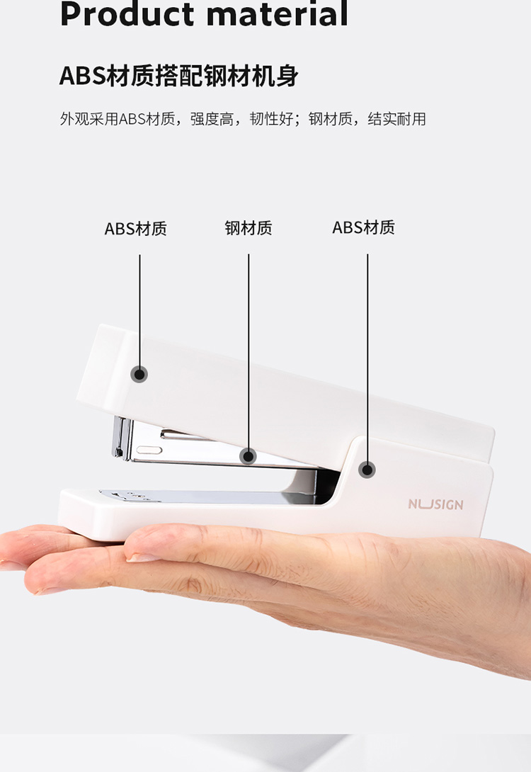 纽赛(NUSIGN)复古订书机 德国创意设计 基础型资料纸手动装订器12#钉 象牙白NS082