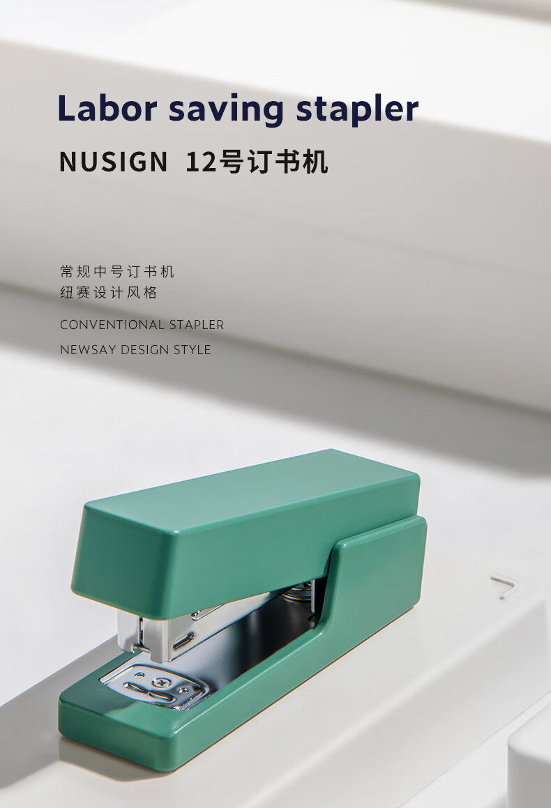 纽赛(NUSIGN)和风系列订书机 学生办公轻巧便携订书器中号 基础型资料纸手动装订器 抹苔绿 NS084