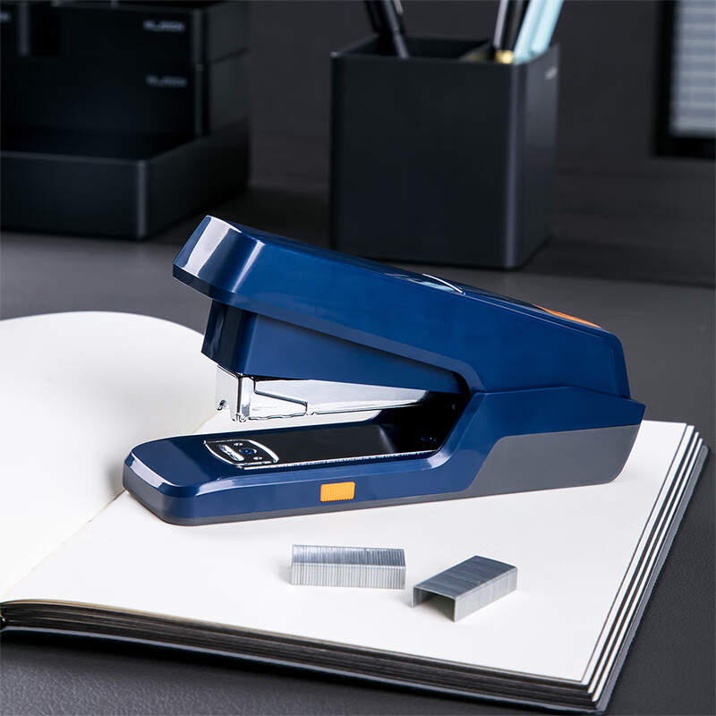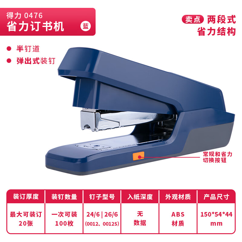 得力(deli)创新型12#省力订书机 推出式两段结构订书器 蓝色0476