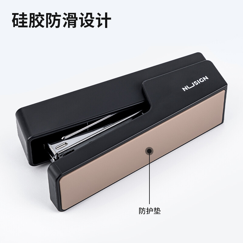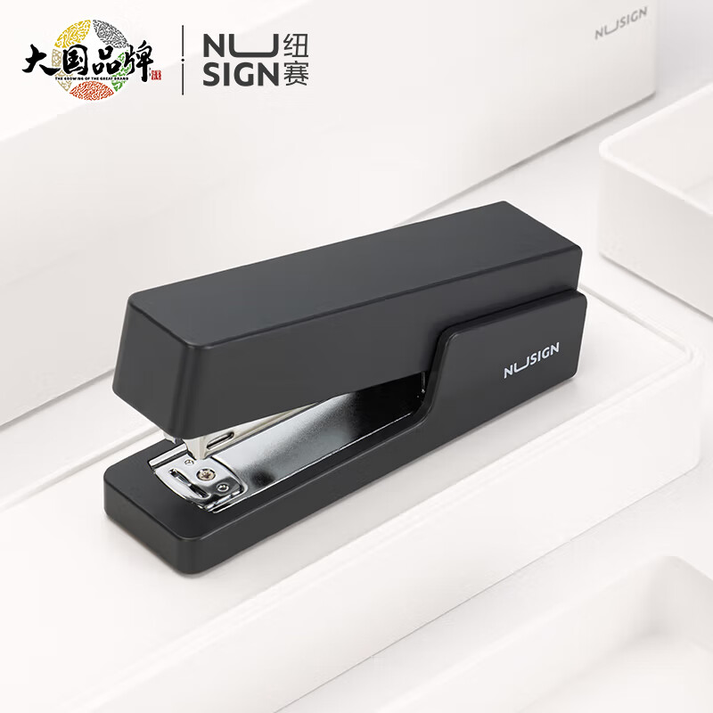 纽赛(NUSIGN)复古订书机 德国创意设计 基础型资料纸手动装订器12#钉 曜石黑NS082