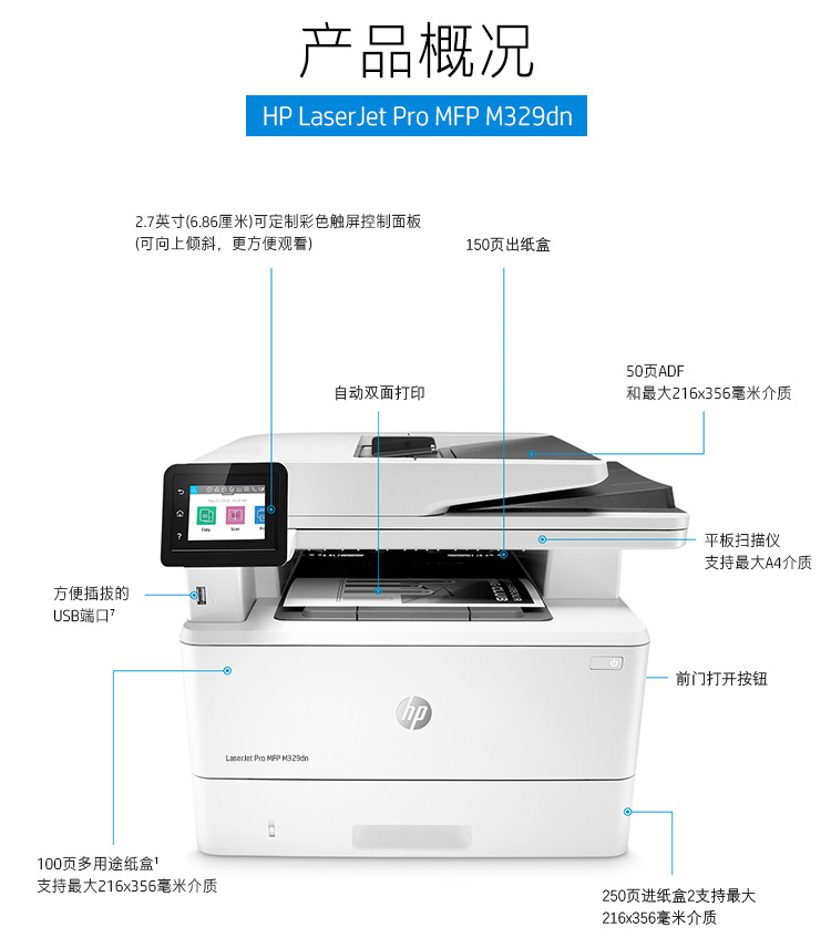 惠普(HP) M329dn激光多功能一体机 商务办公 打复扫三合一 自动双打