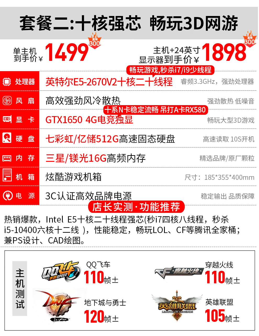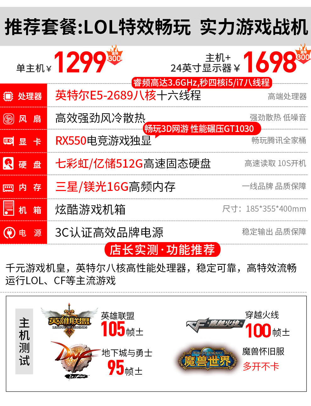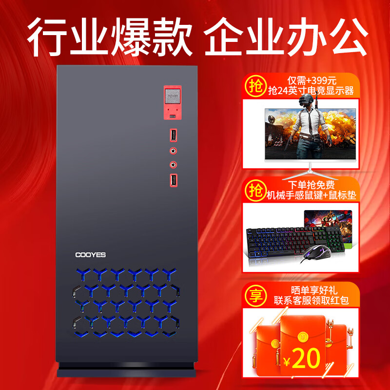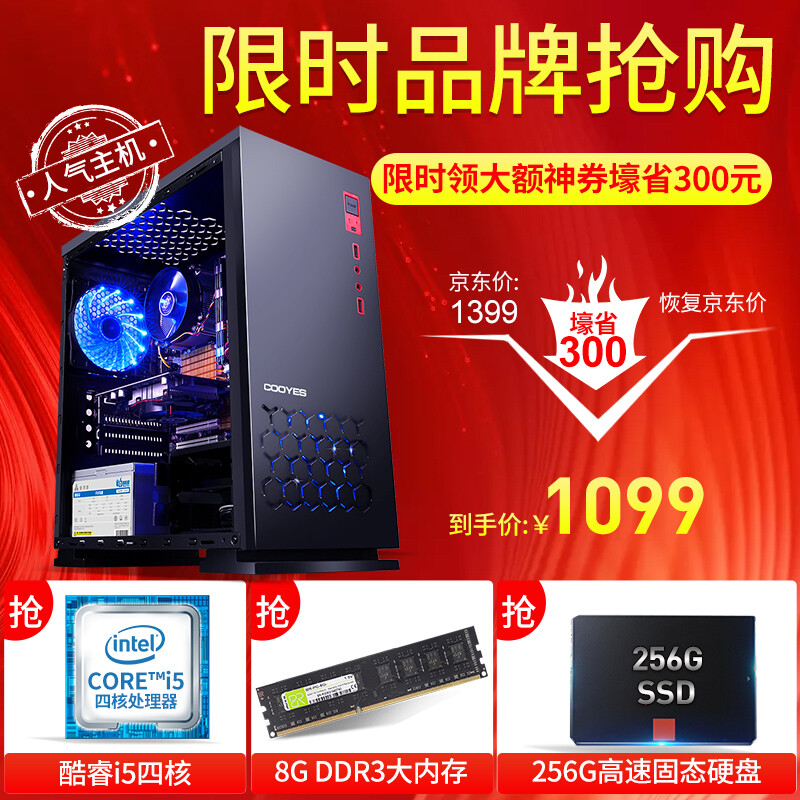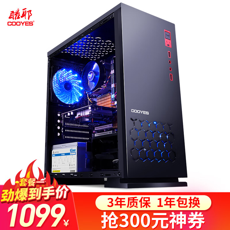 酷耶(Cooyes) 八核游戏16G台式机电脑主机整机全套组装家用电竞企业办公 套餐一(i5四核/8G/256G/GT730独显)