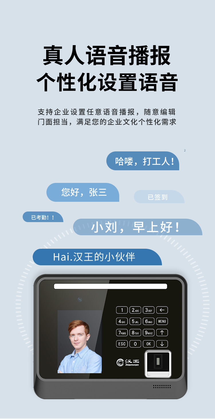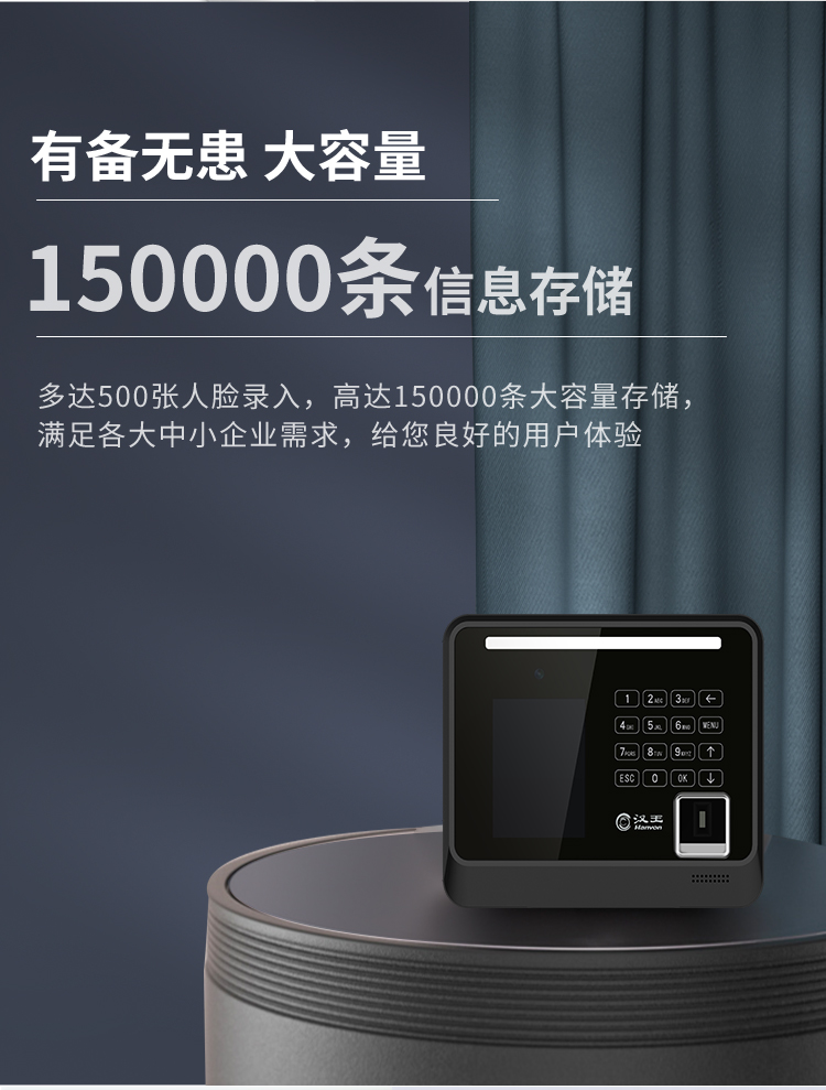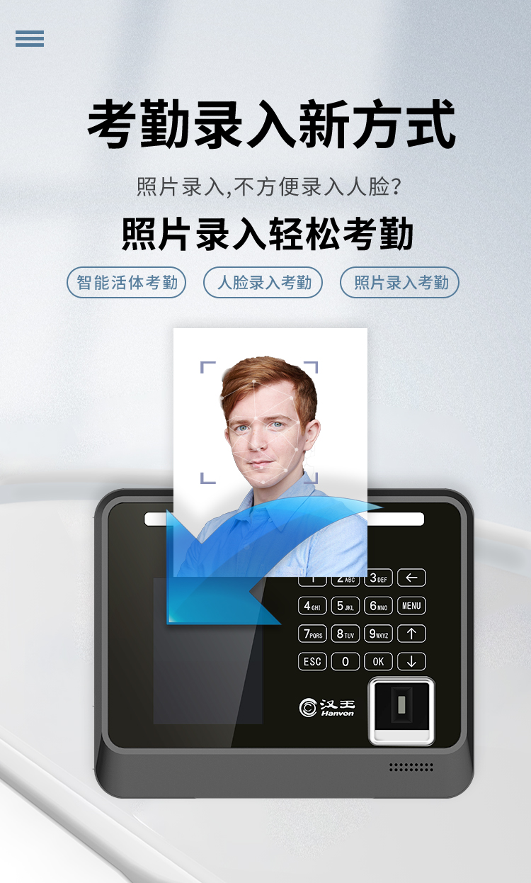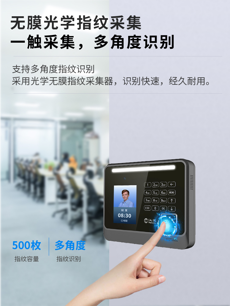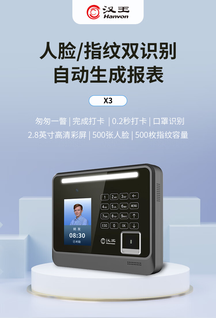 汉王(Hanvon)X3人脸指纹混合识别考勤机 无接触员工上下班免软件打卡机签到机 U盘下载 自动生成报表
