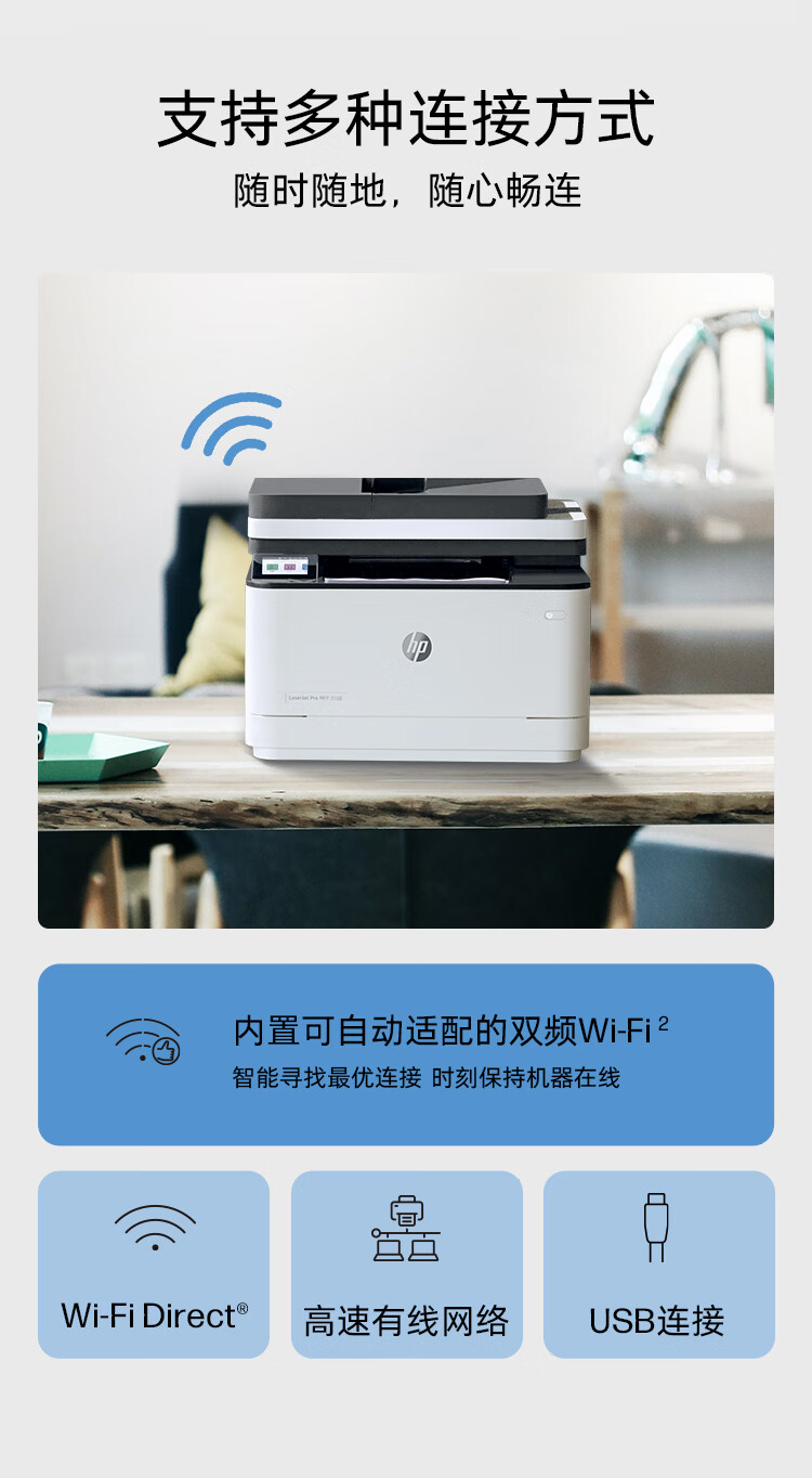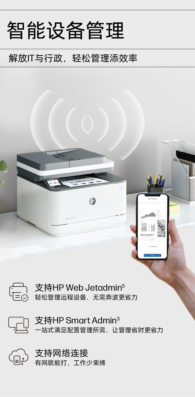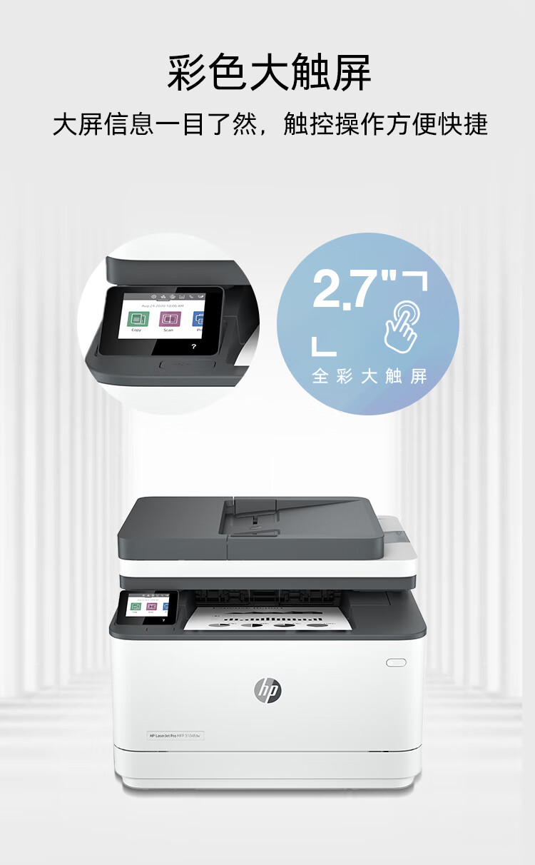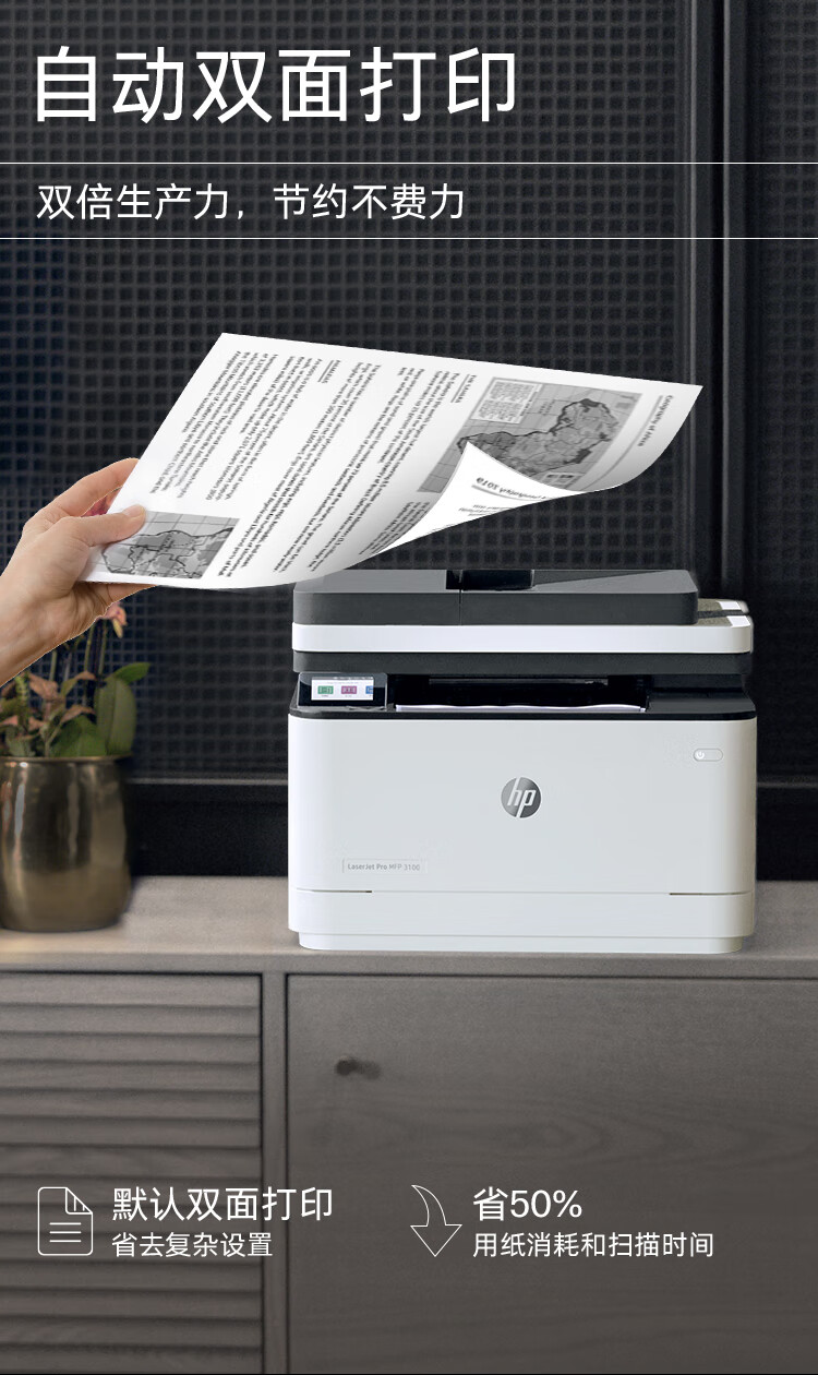 惠普(HP)3104fdw自动双面黑白激光无线打印机 自动输稿 打印复印扫描传真四合一一体机 智能管