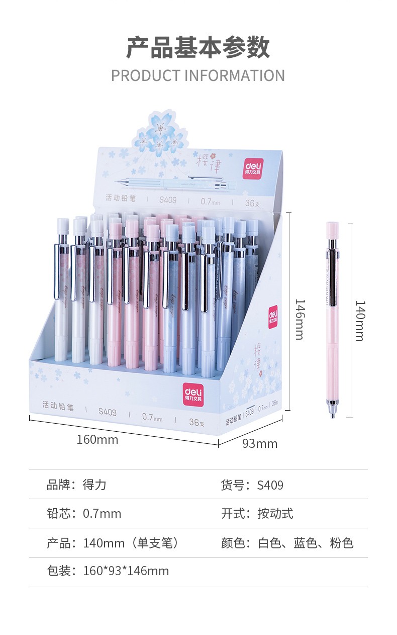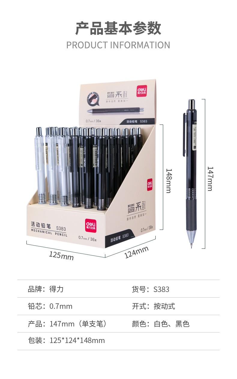 得力(deli) 自动铅笔 0.7mm学生活动铅笔办公学习绘画自动笔S337/S339