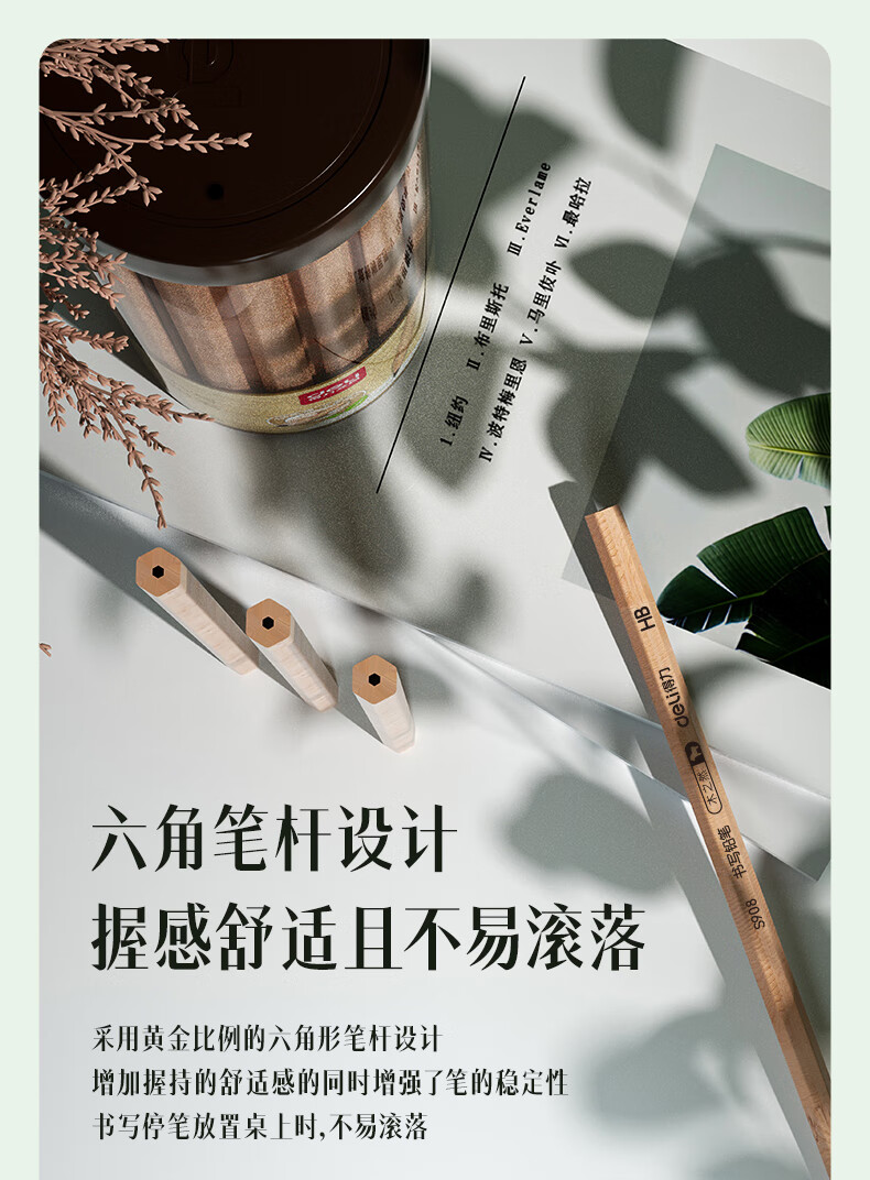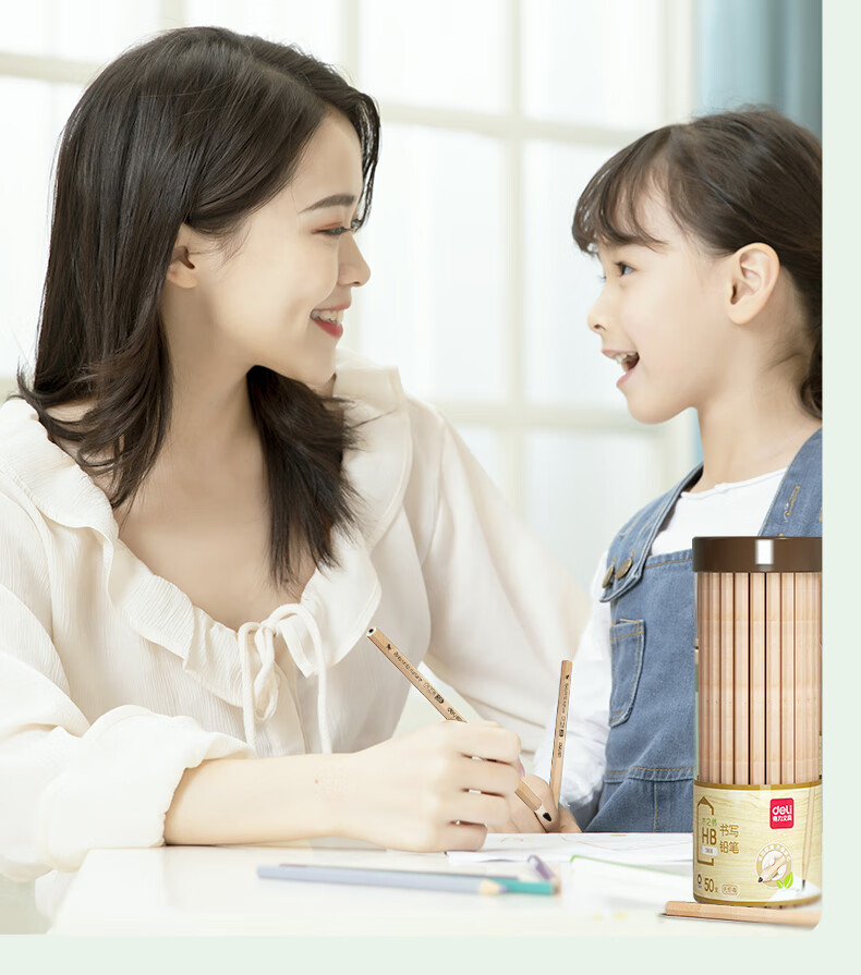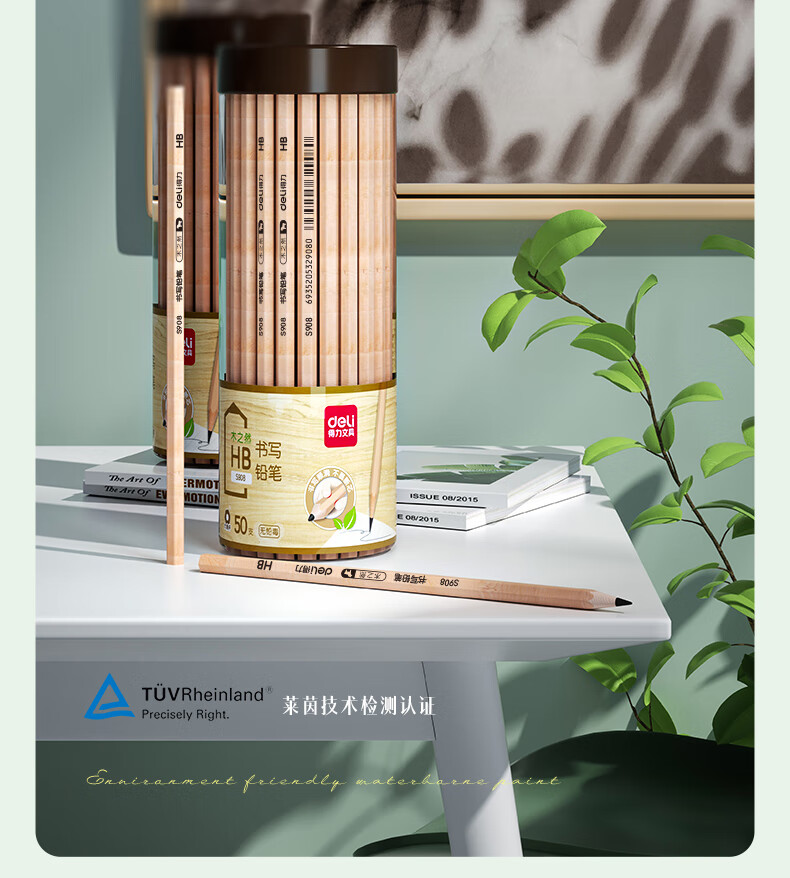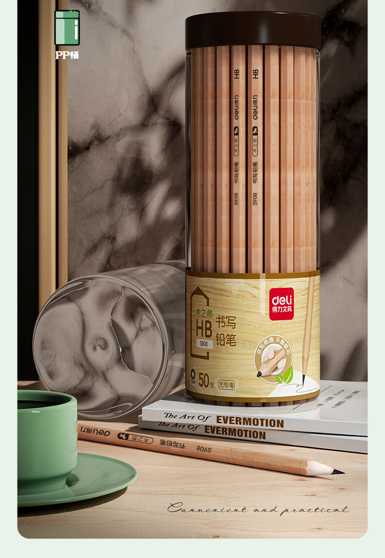 得力(deli)木之然系列六角笔杆原木HB铅笔素描绘图学生铅笔 50支/桶 开学礼物S908