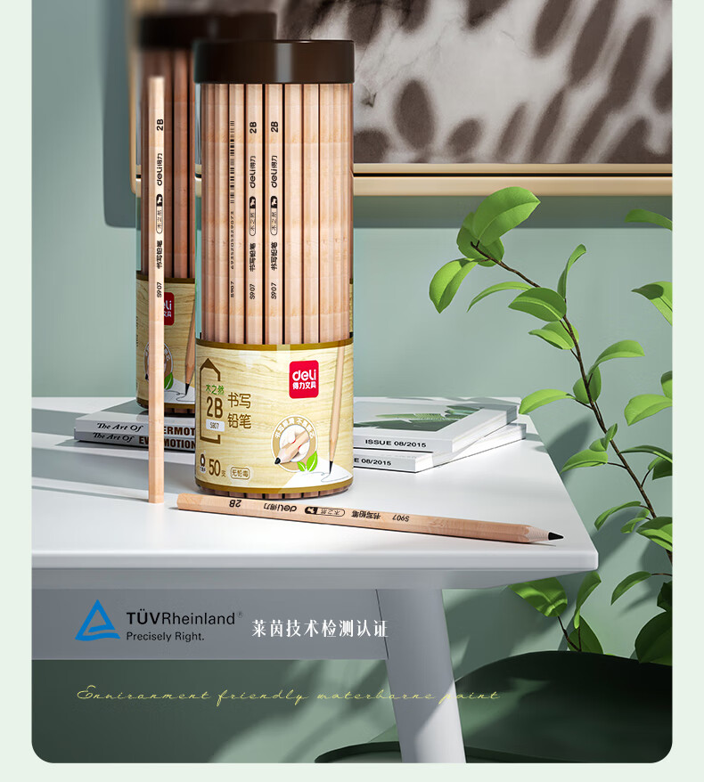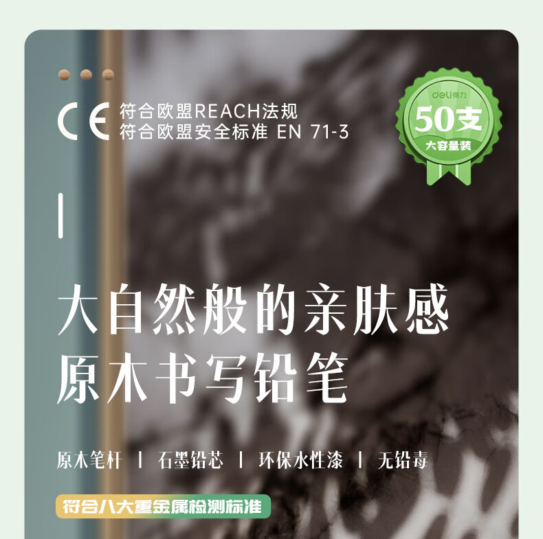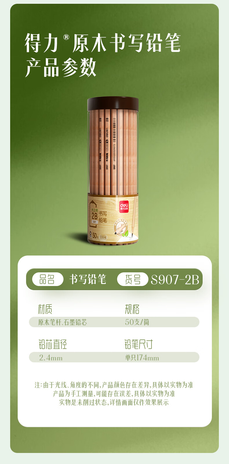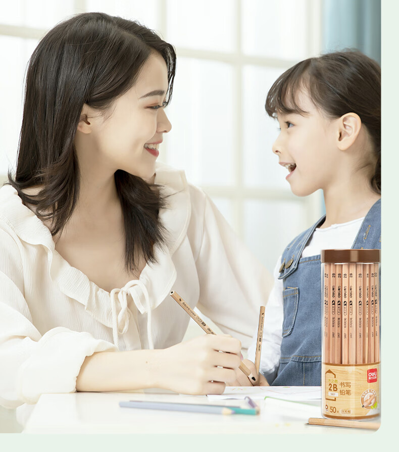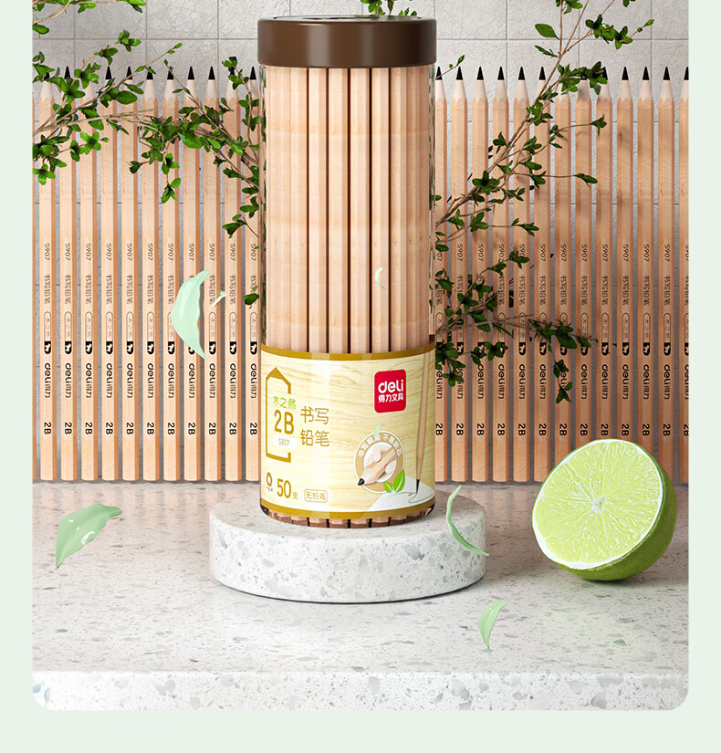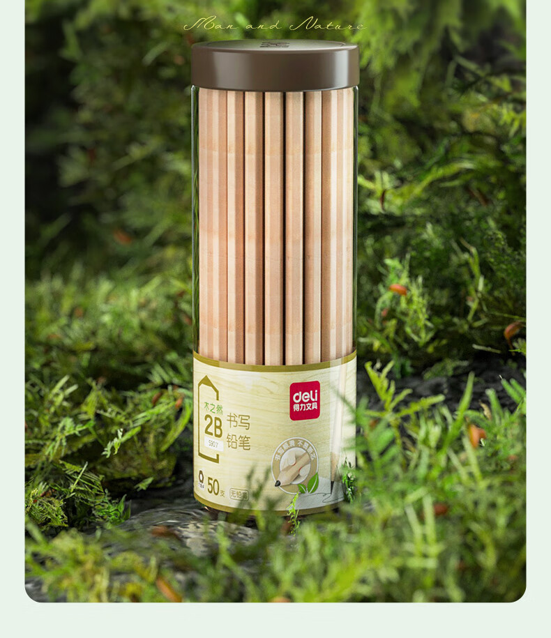 得力(deli)木之然系列六角笔杆原木2B铅笔考试专用学生铅笔 50支/桶 开学礼物S907