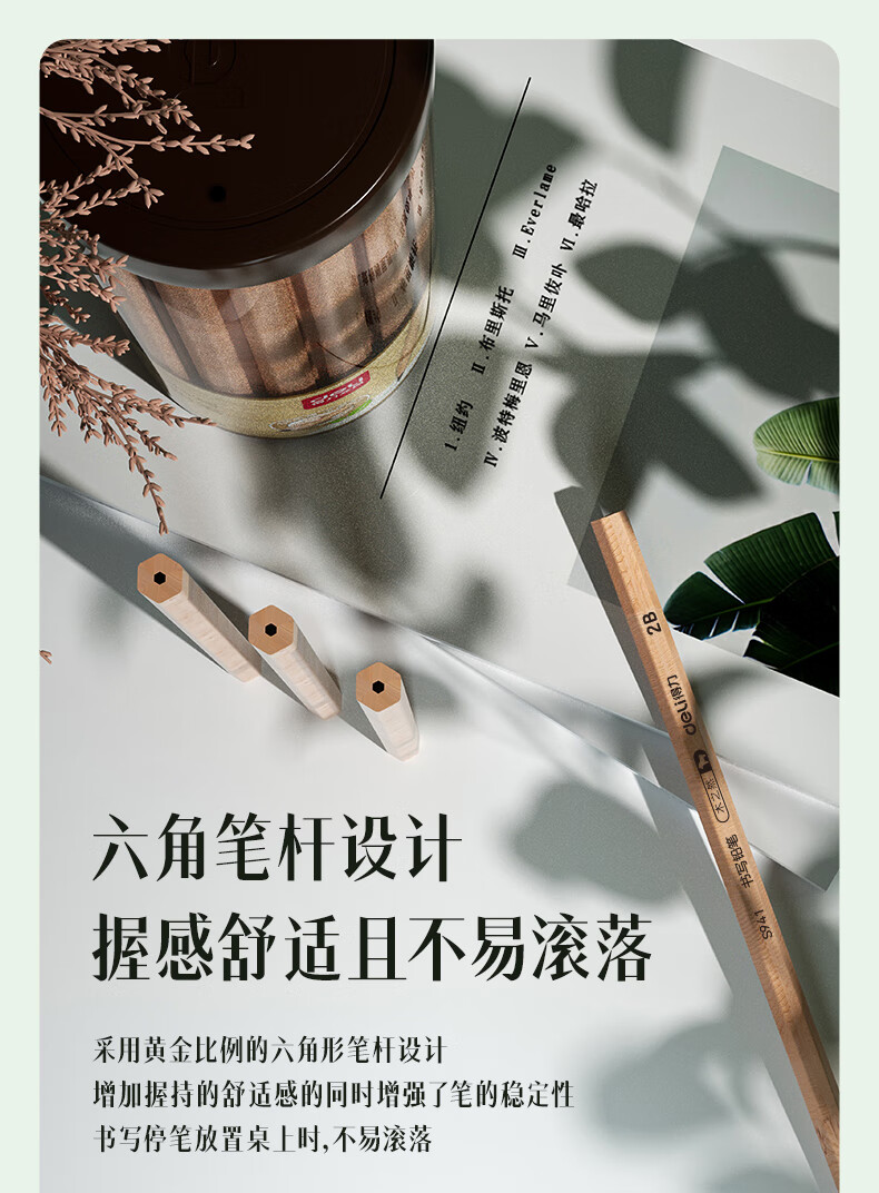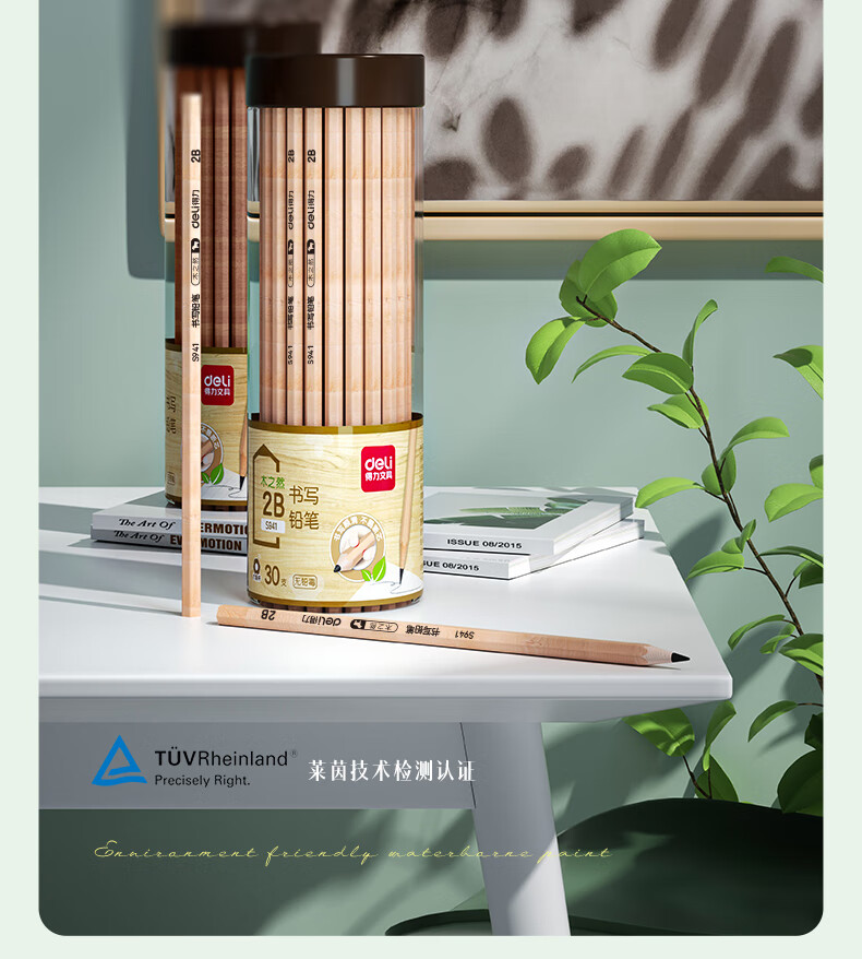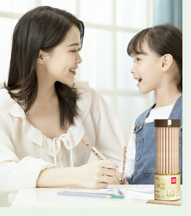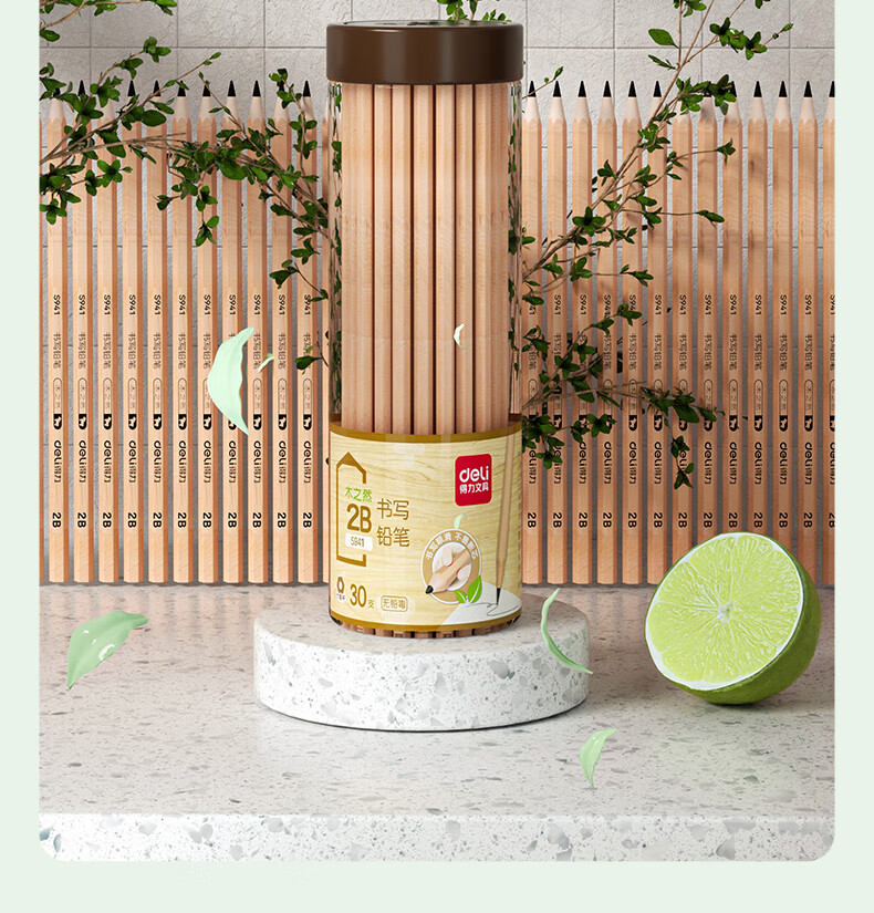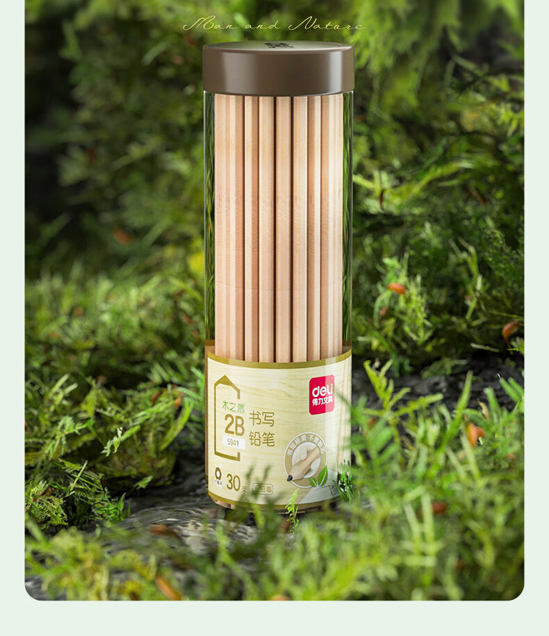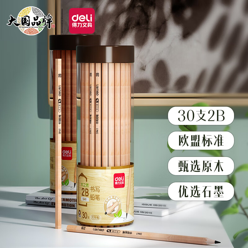 得力(deli)木之然系列2B六角笔杆书写绘画素描铅笔 30支/桶S941-2B