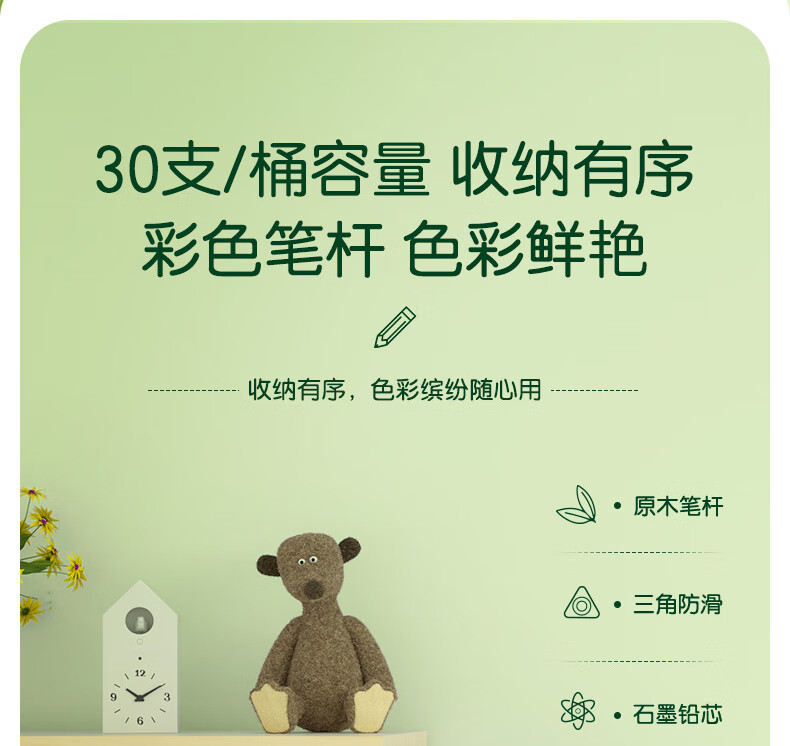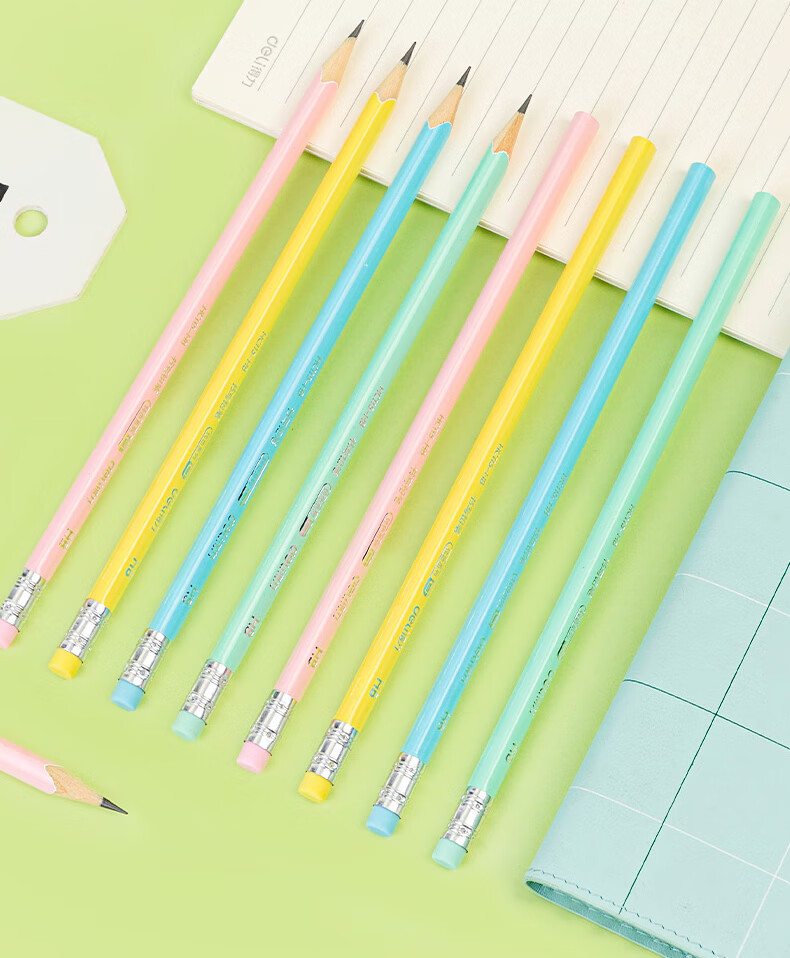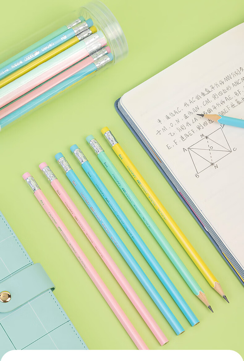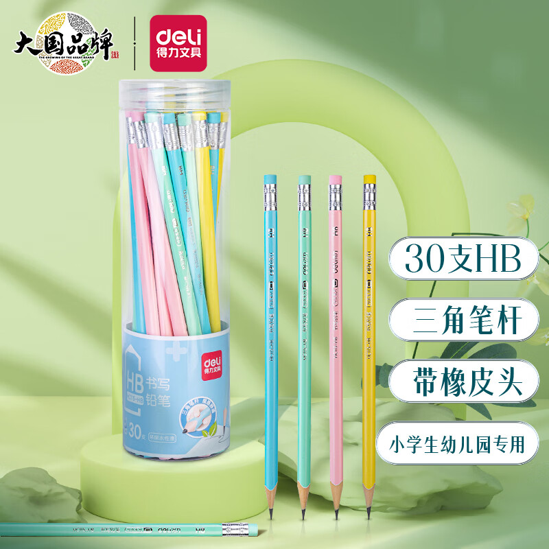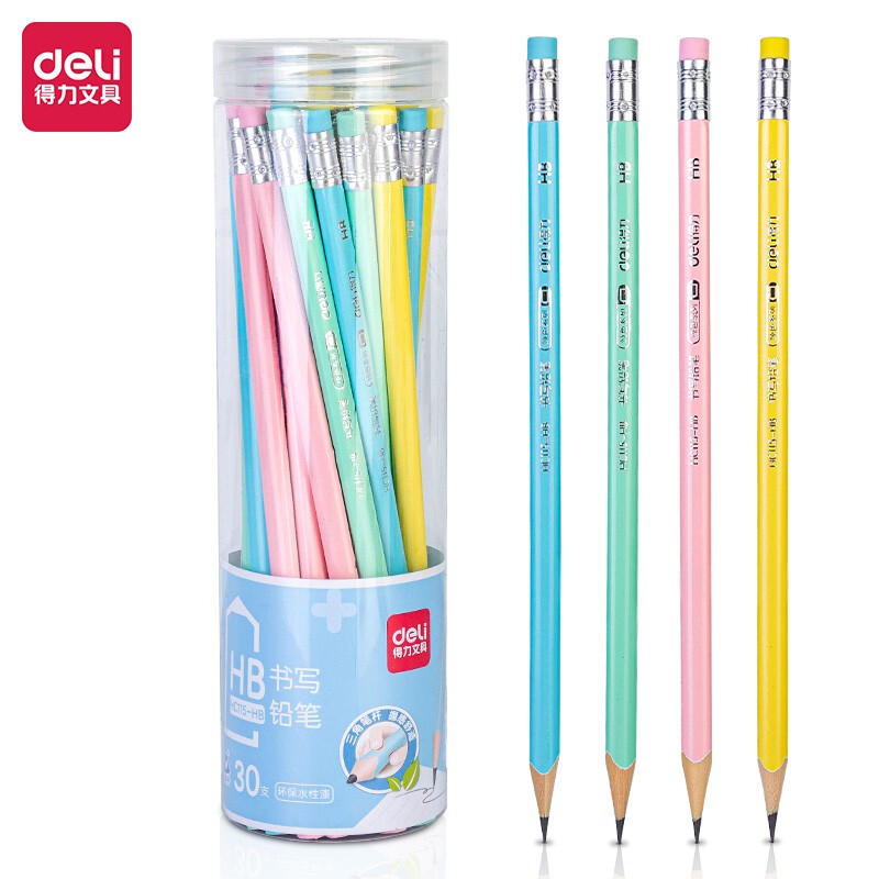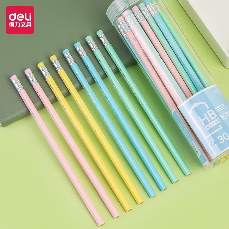 得力(deli)HB书写铅笔 30支/桶马卡龙色三角笔杆 小学生幼儿园专用HC115-HB