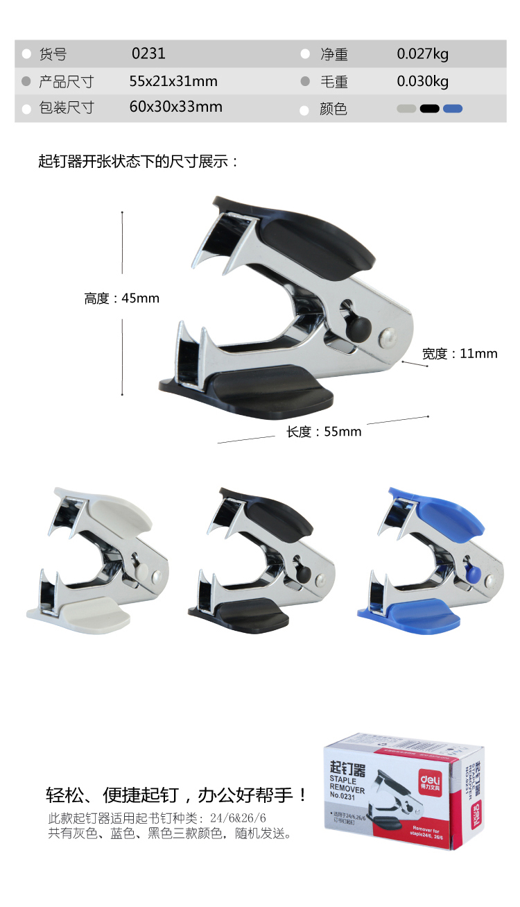 得力(deli)12#便捷起钉器0231 蓝色