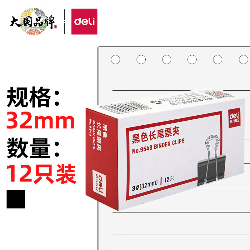 得力(deli)9543-(黑)3#长尾票夹12只/盒