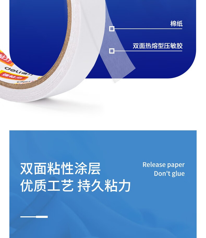 得力(deli)高粘性双面胶带 加粘双面胶 双面棉纸胶带/双面泡棉胶带 办公用品 单卷装 30407双面胶带24mm*10y