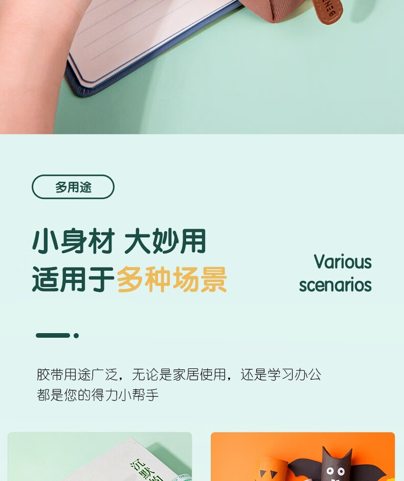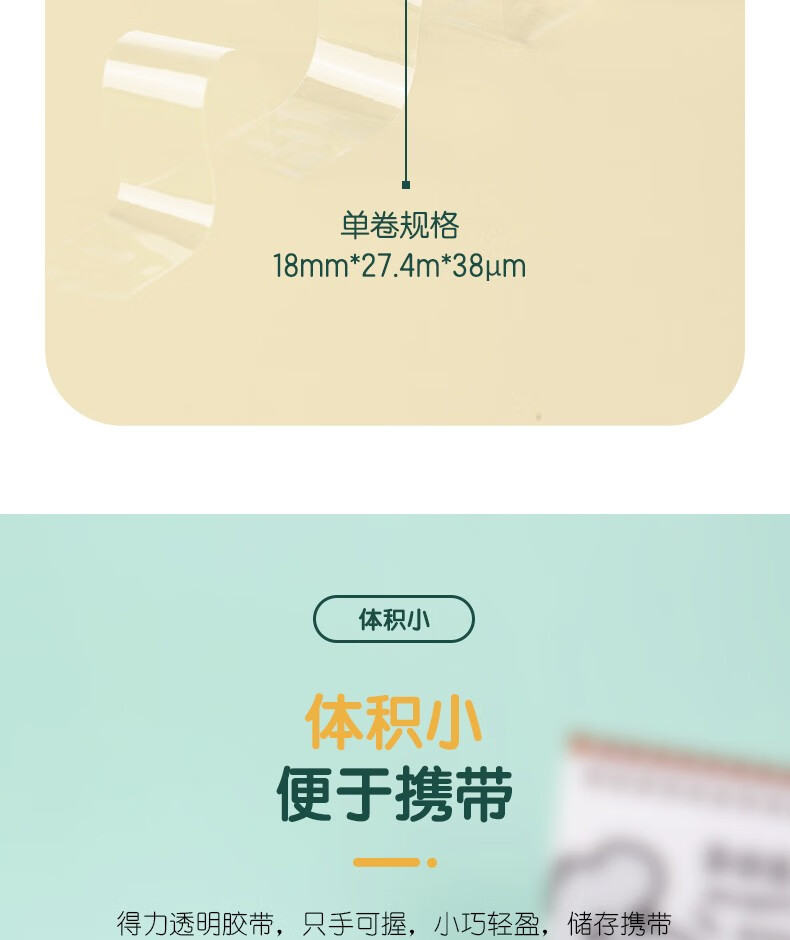 得力(deli) 学生文具胶带 小卷胶带 透明彩色窄胶布 办公用品 30061(18mm*14y 8卷)