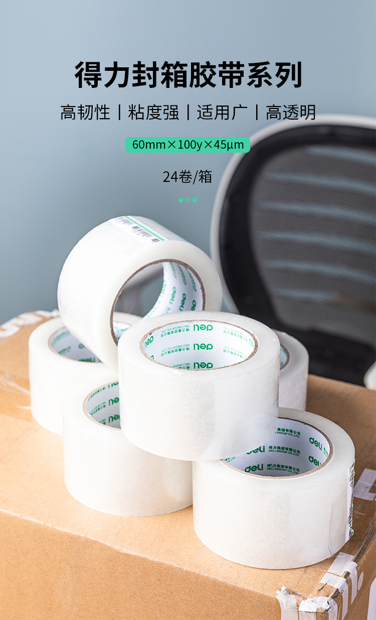 得力(deli)高品质高透明封箱胶带打包胶带 60mm*100y*45um(91.4m/卷) 24卷/箱 办公用品 33301