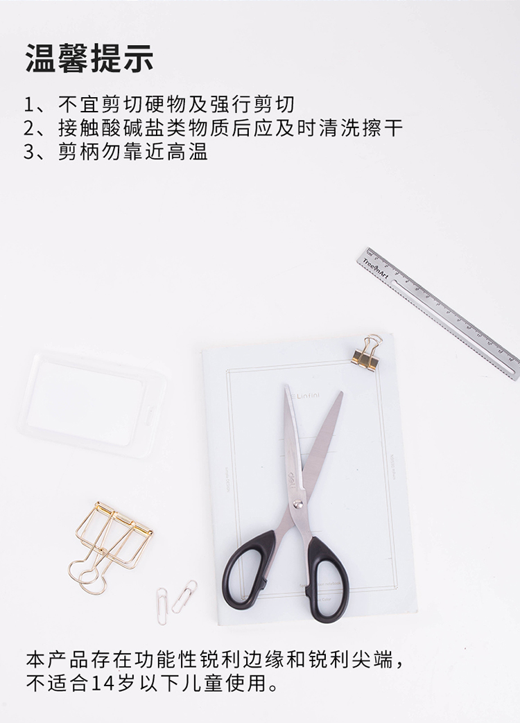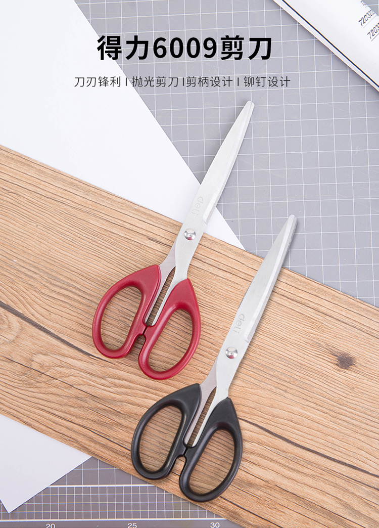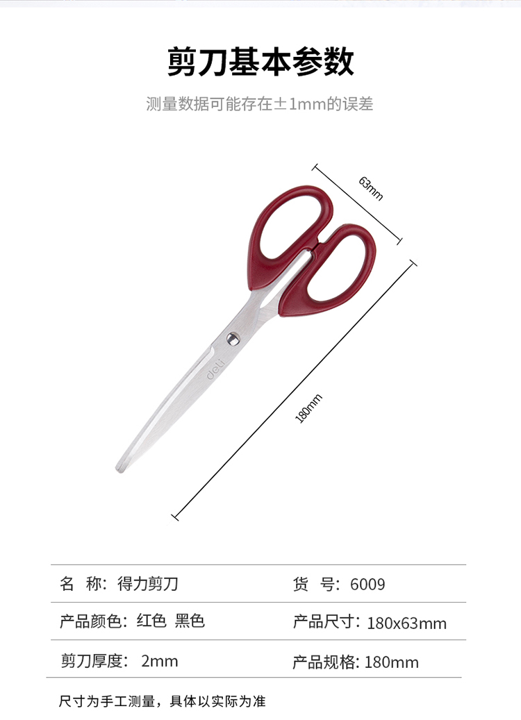 得力(deli)180mm中号办公生活剪刀 黑色6009