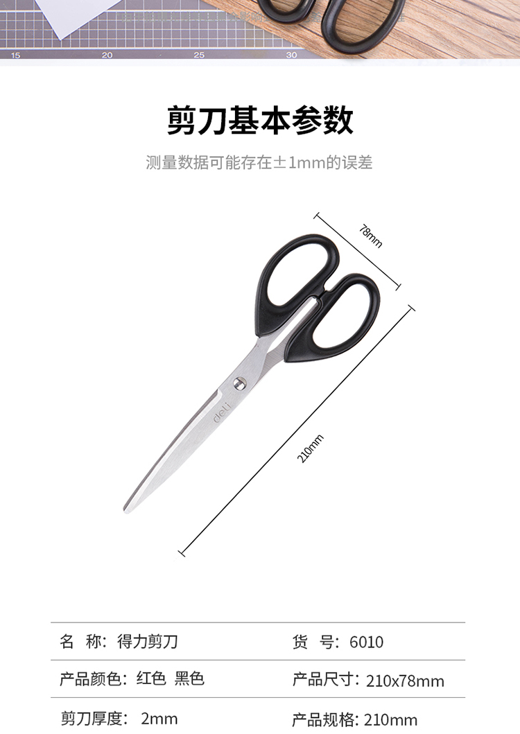 得力(deli)210mm办公家用生活剪刀(大号) 1把 办公用品 颜色随机6010