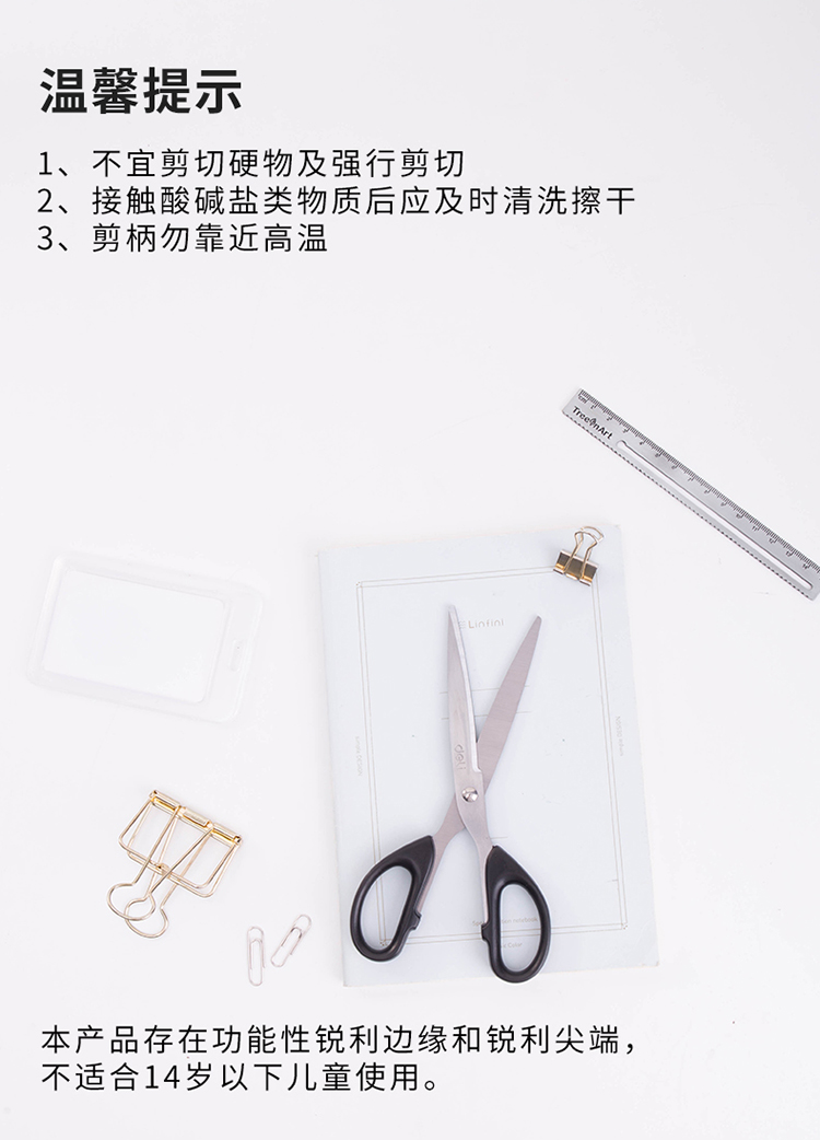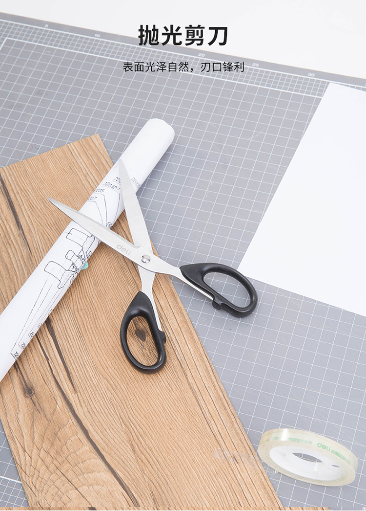 得力(deli)210mm大号办公生活剪刀 黑色6010