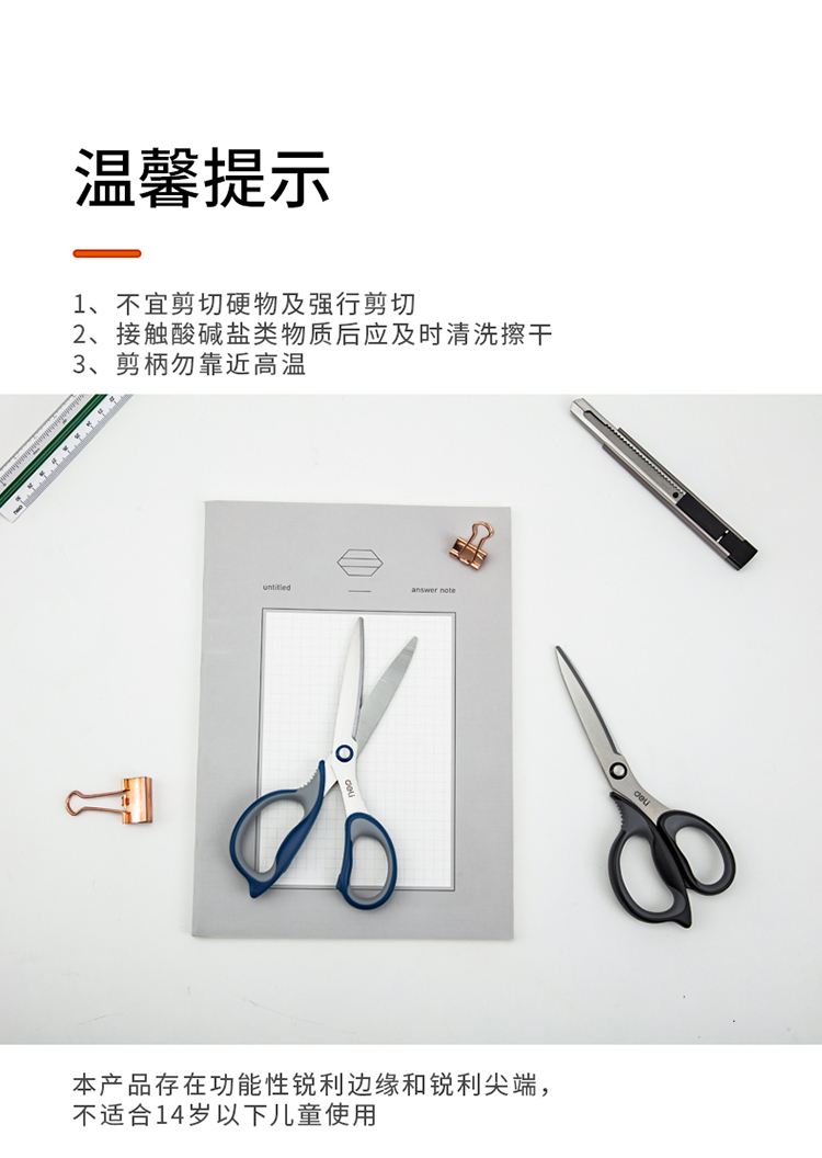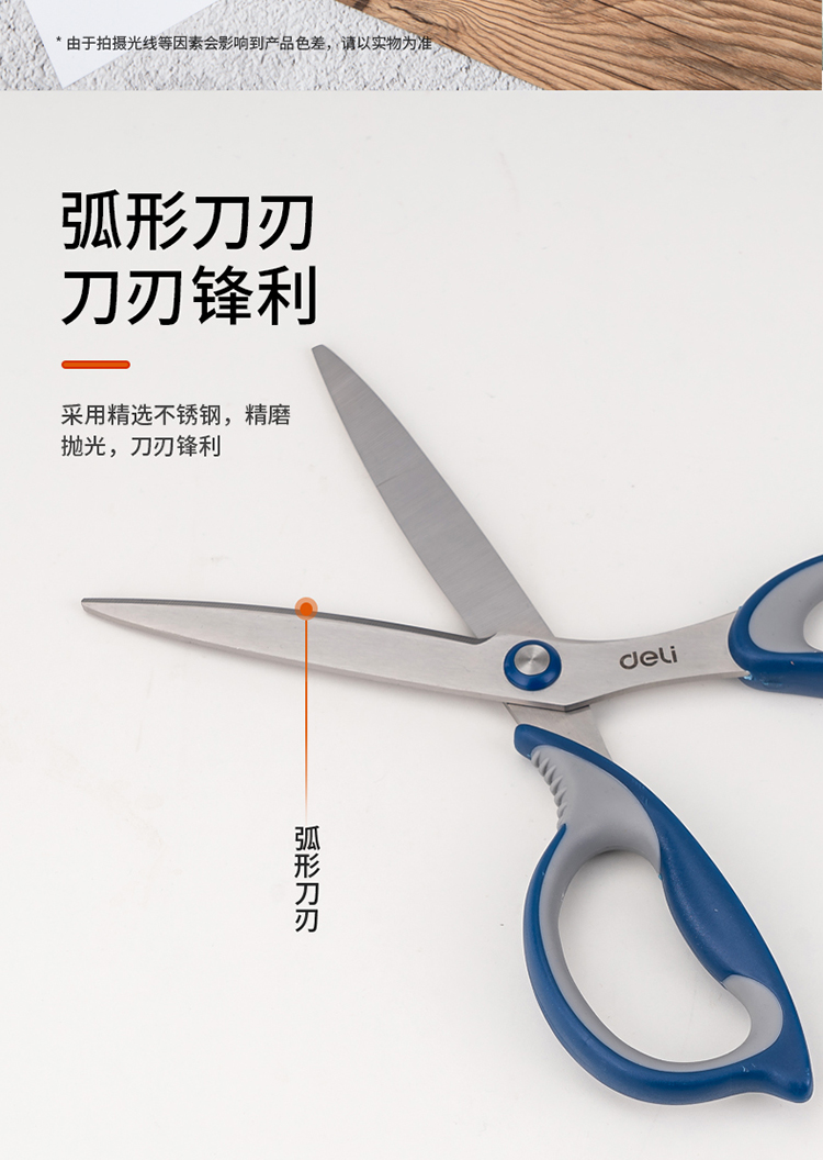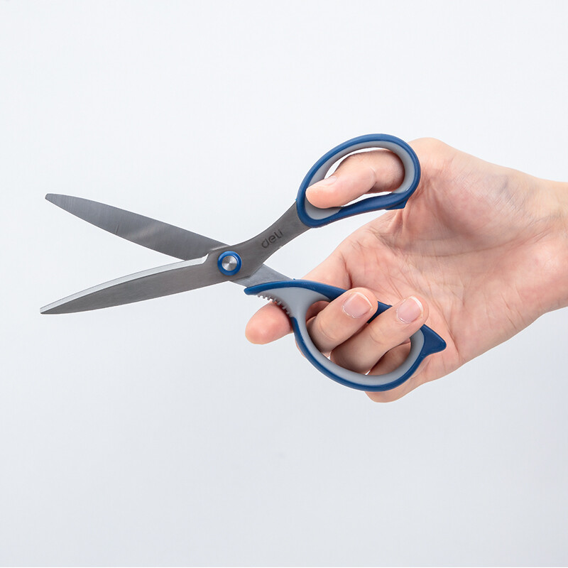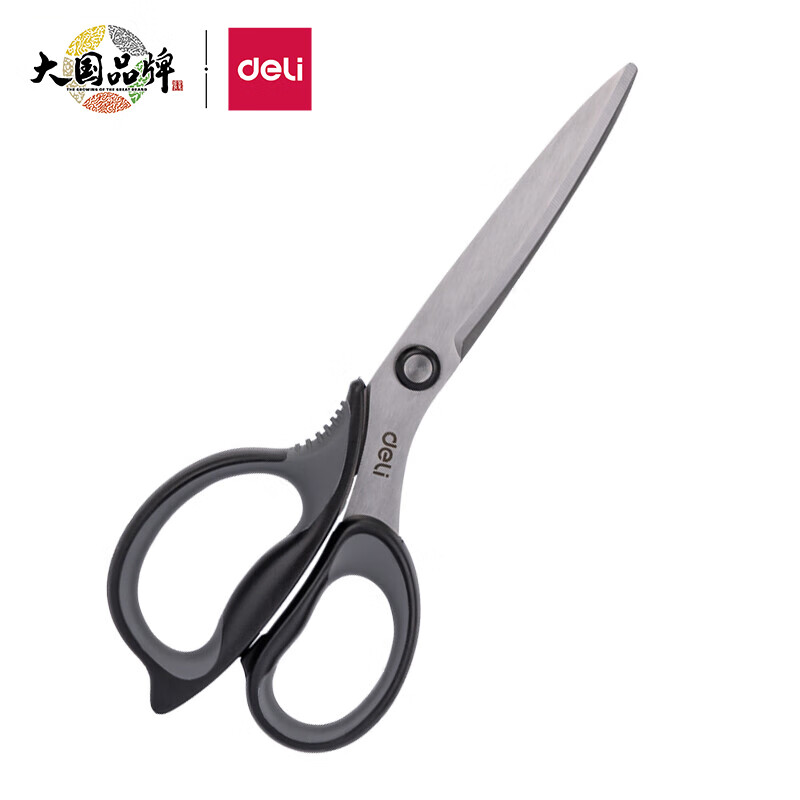 得力(deli)175mm中号办公家用剪刀 弧形剪片省力剪刀 黑色77759
