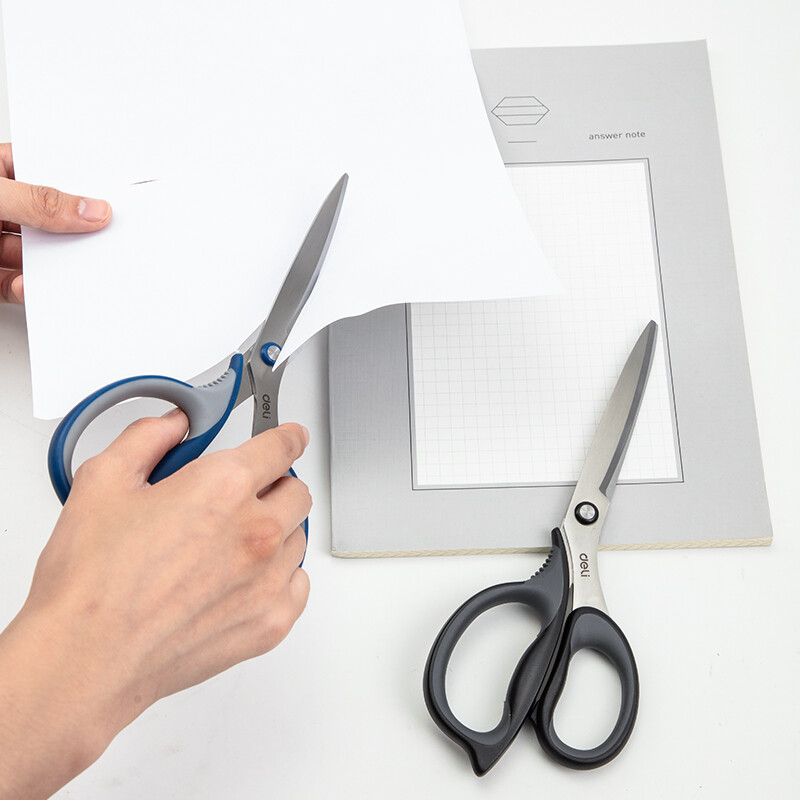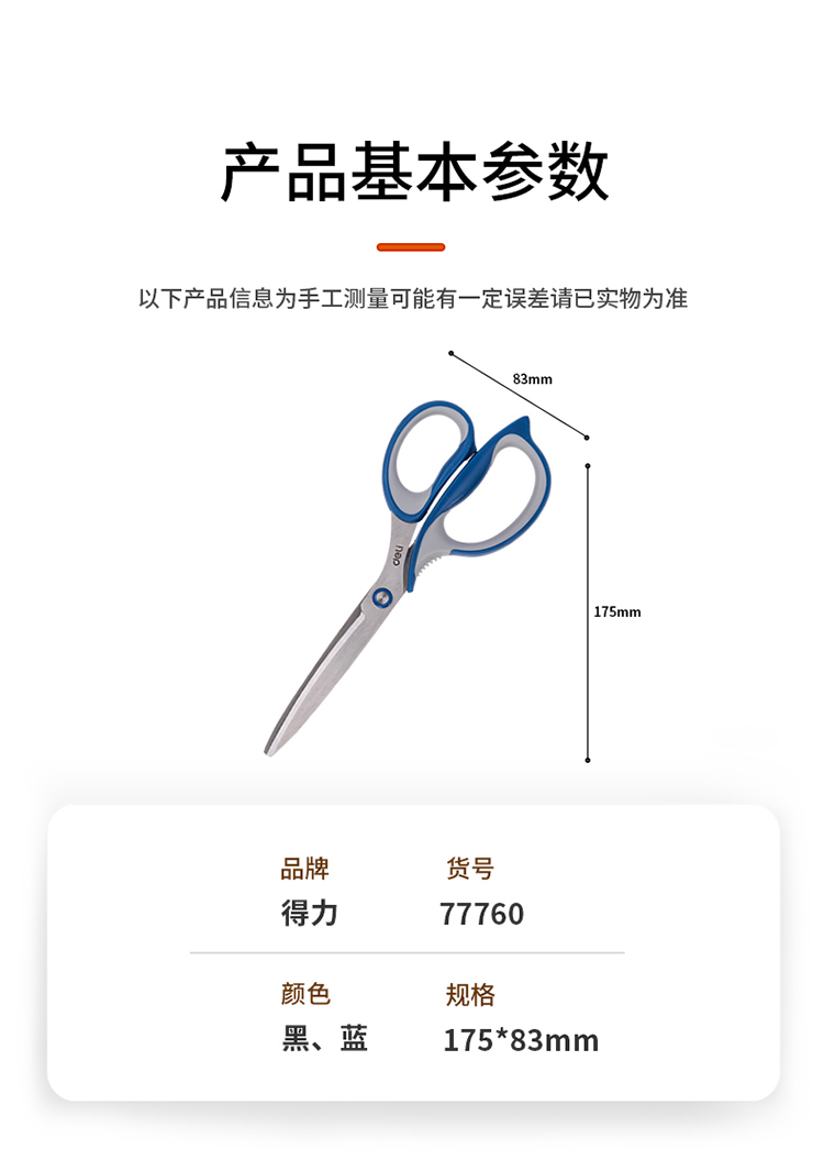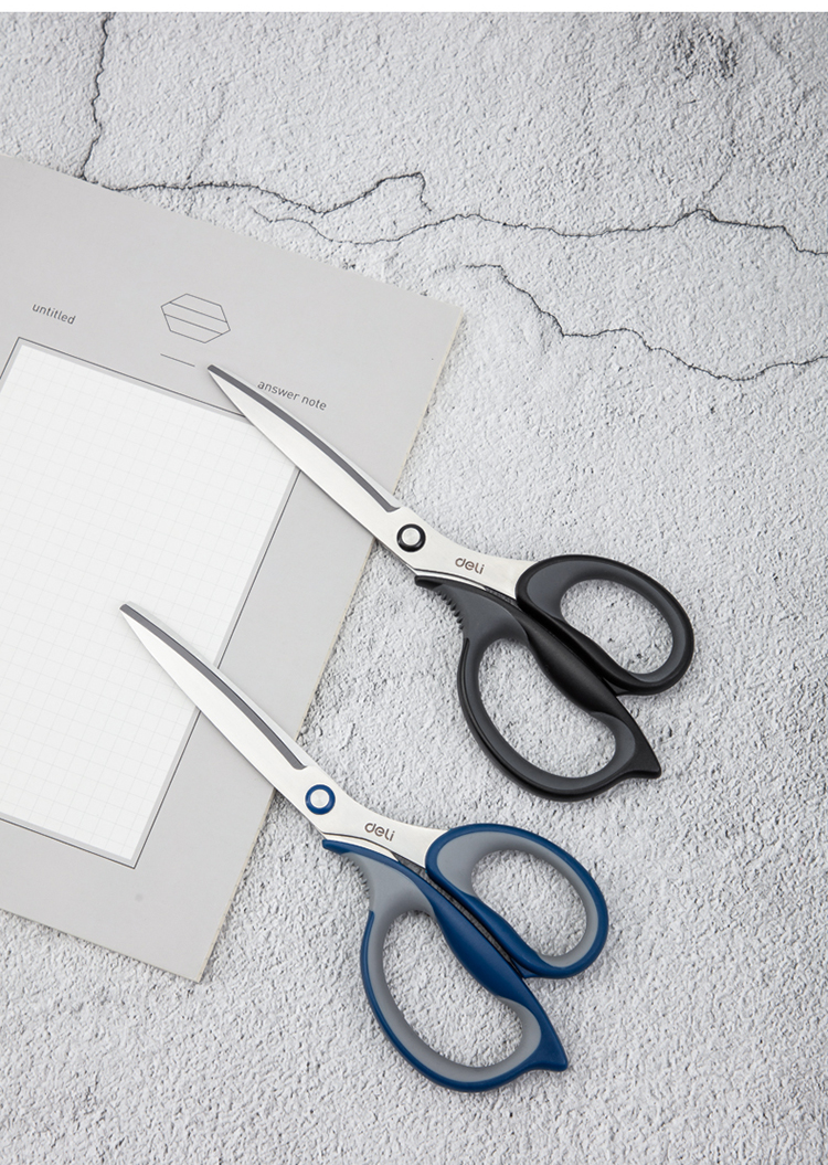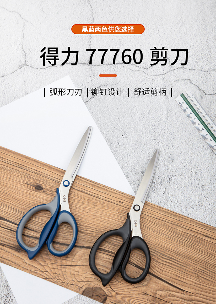 得力(deli)210mm大号办公家用剪刀 弧形剪片省力剪刀 蓝色77760