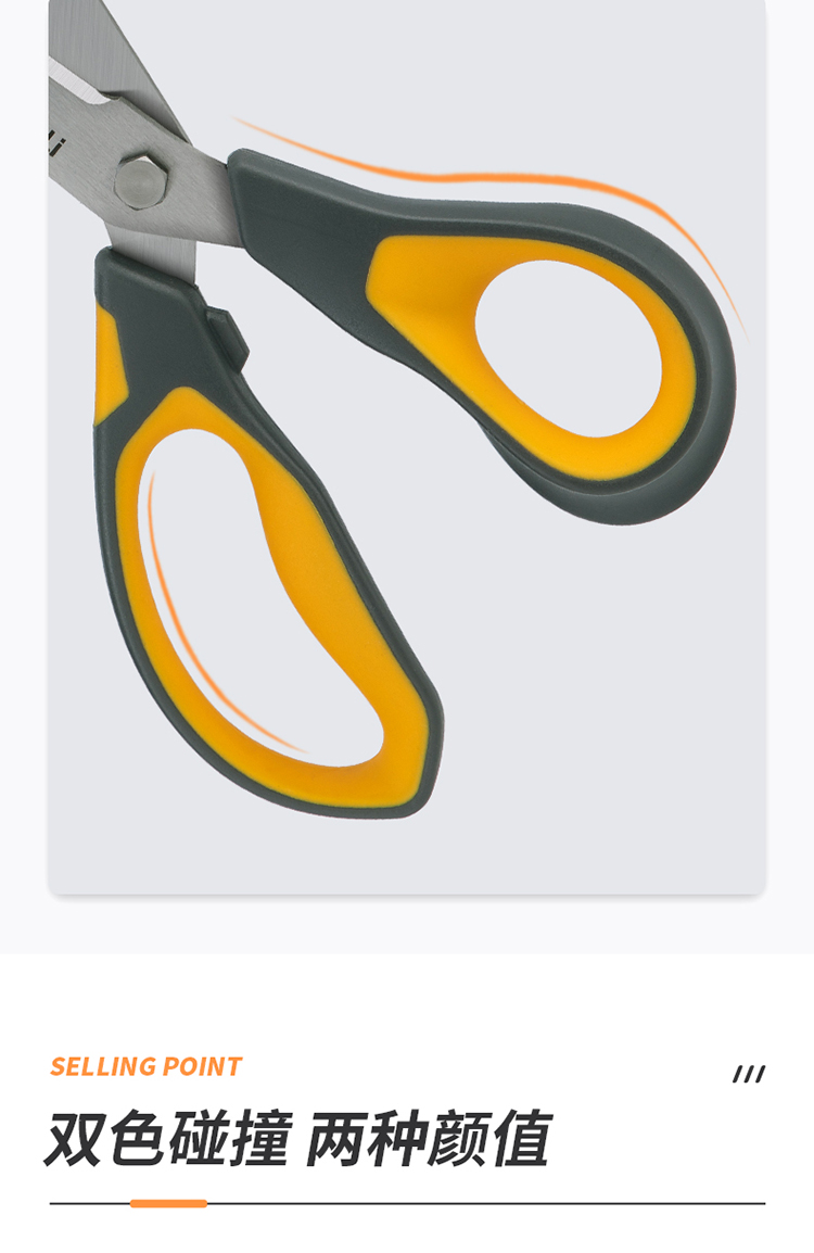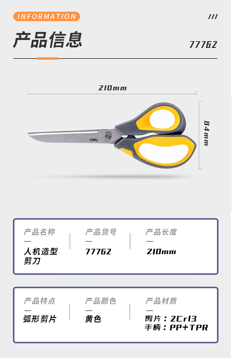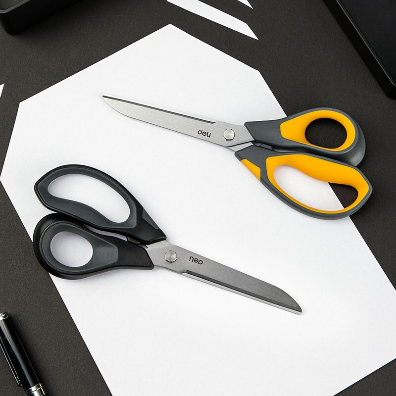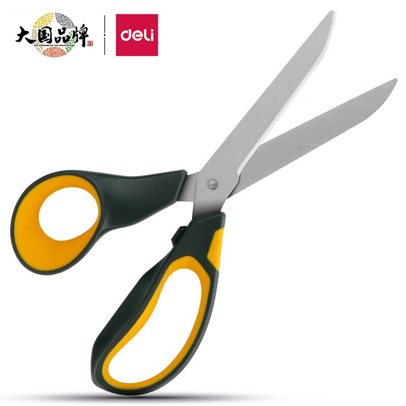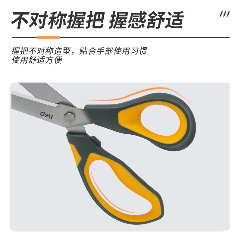 得力(deli)210mm办公家用生活剪刀 不对称款握感舒适 黄色 77762
