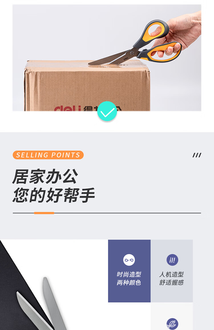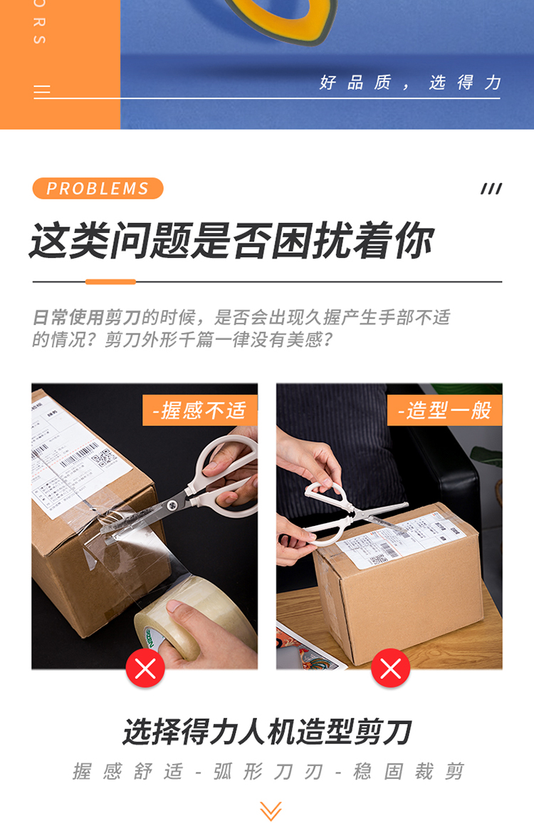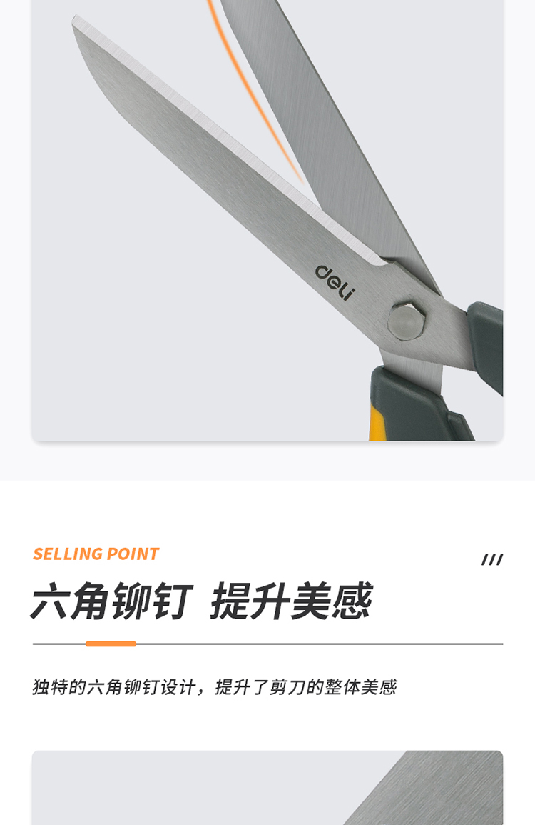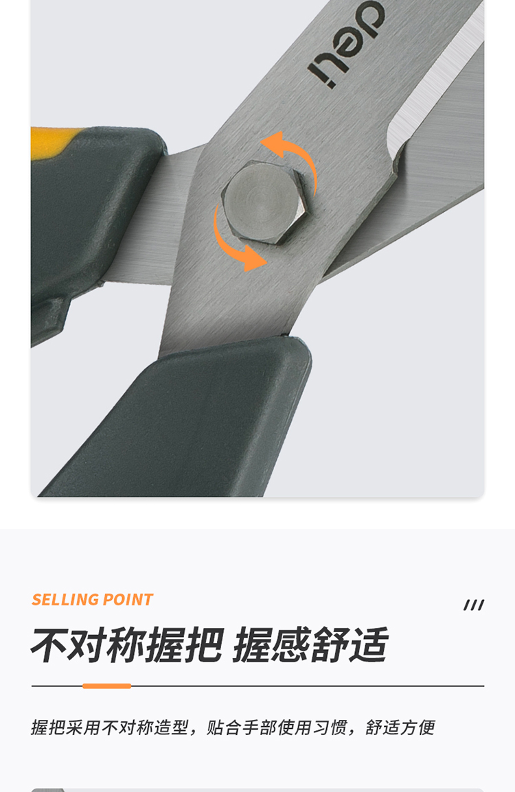 得力(deli)210mm办公家用生活剪刀 不对称款握感舒适 黄色 77762