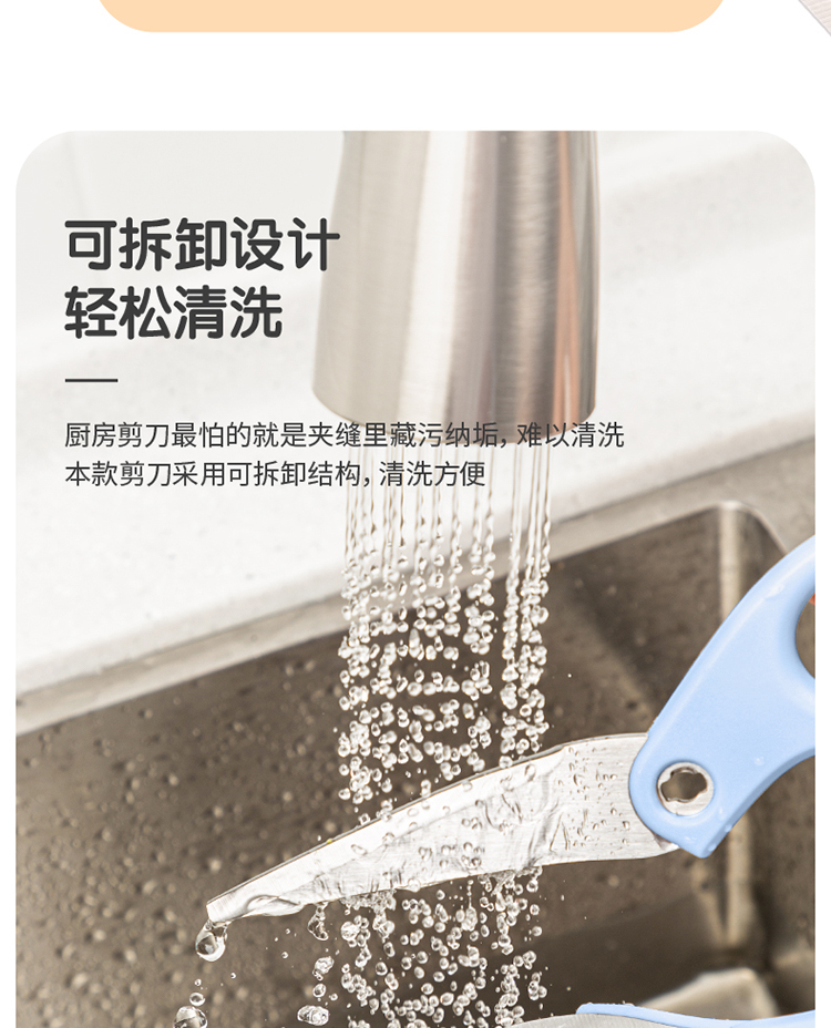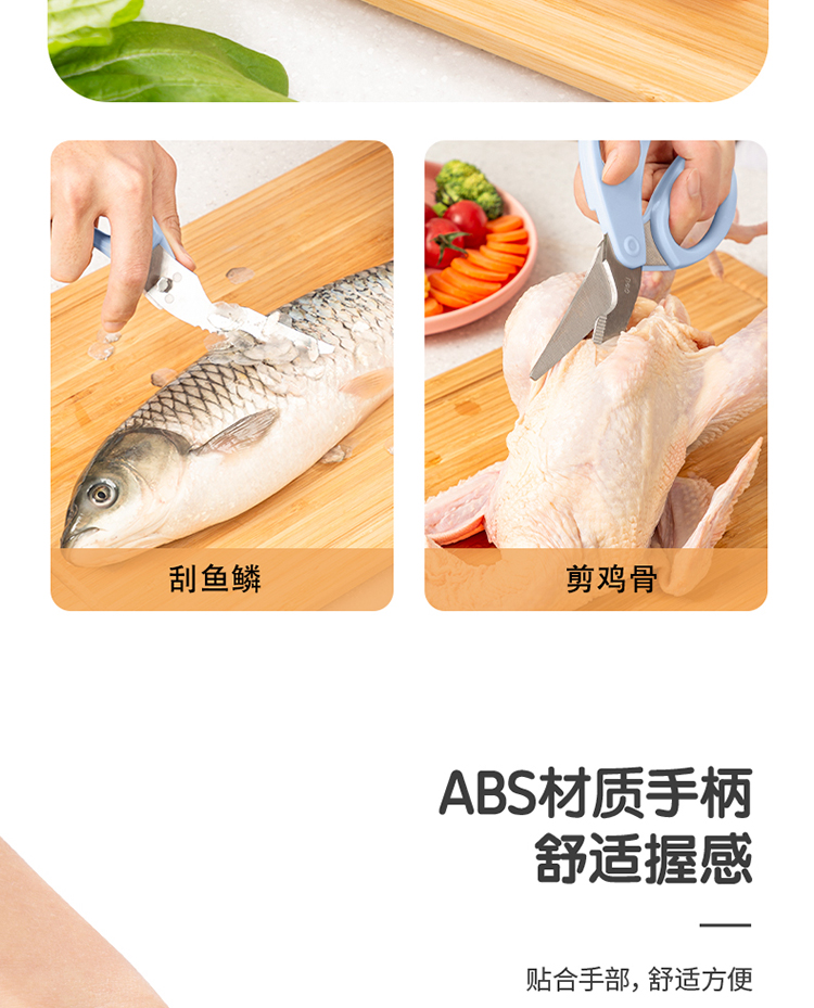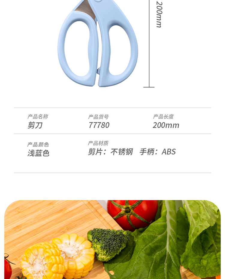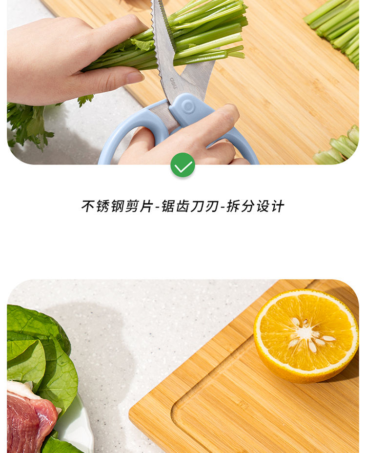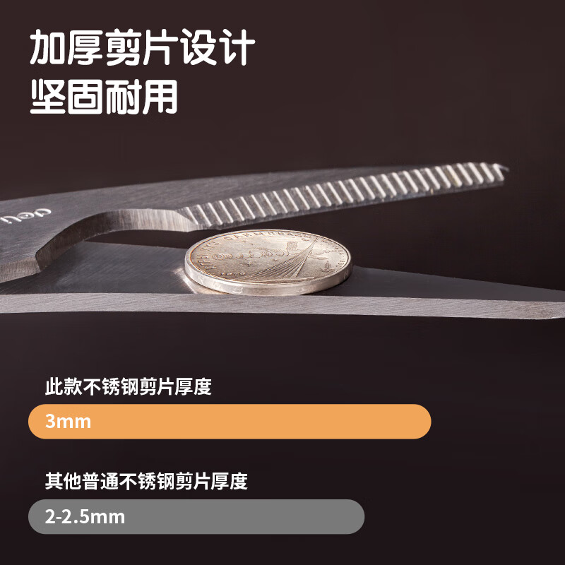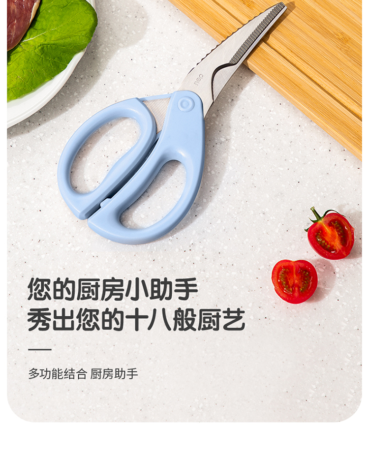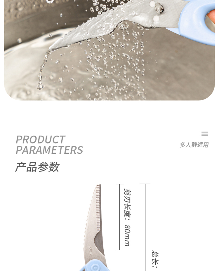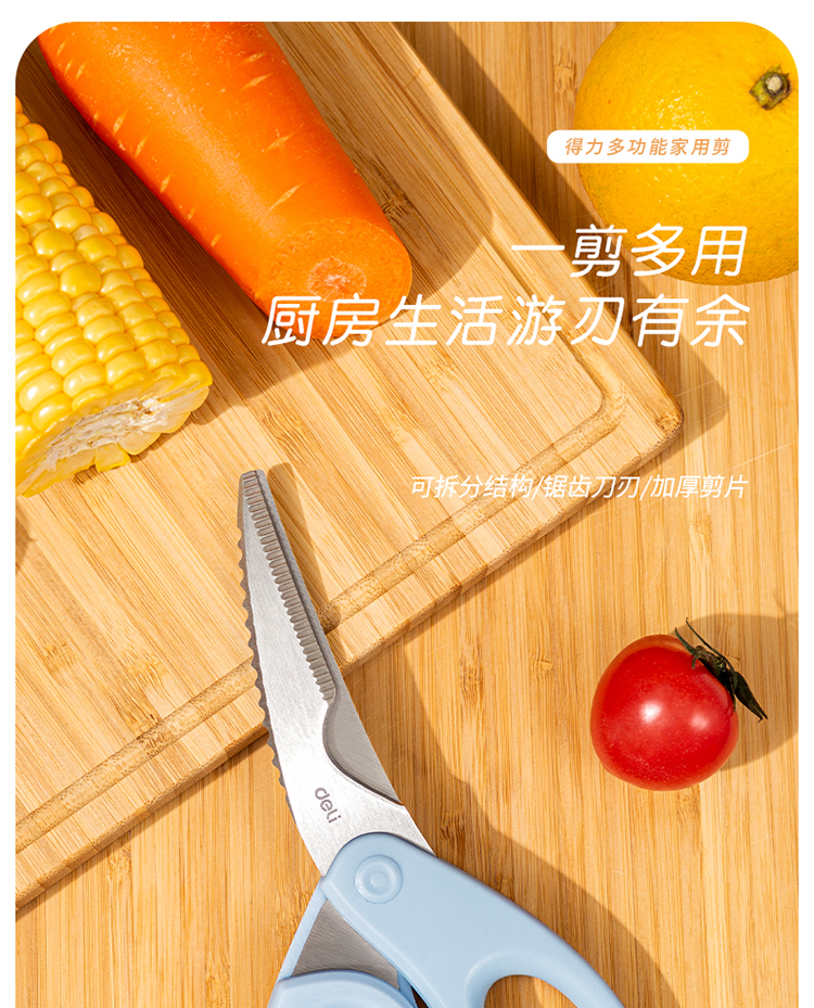得力(deli)不锈钢厨房剪刀 多功能剪刀 家用剪子 剪肉食物剪子 77780 蓝色