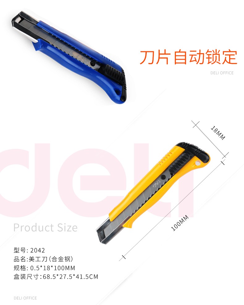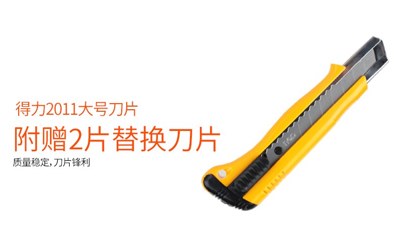 得力(deli)大号耐用美工刀 手动锁定功能裁纸刀/小刀 2041 黄