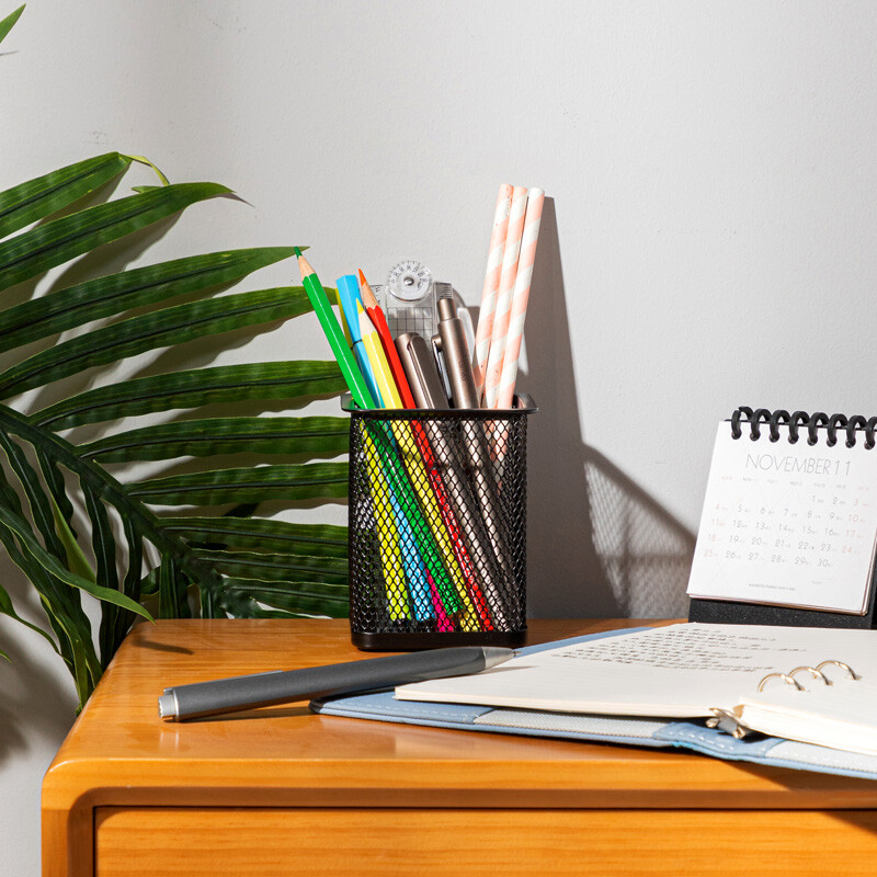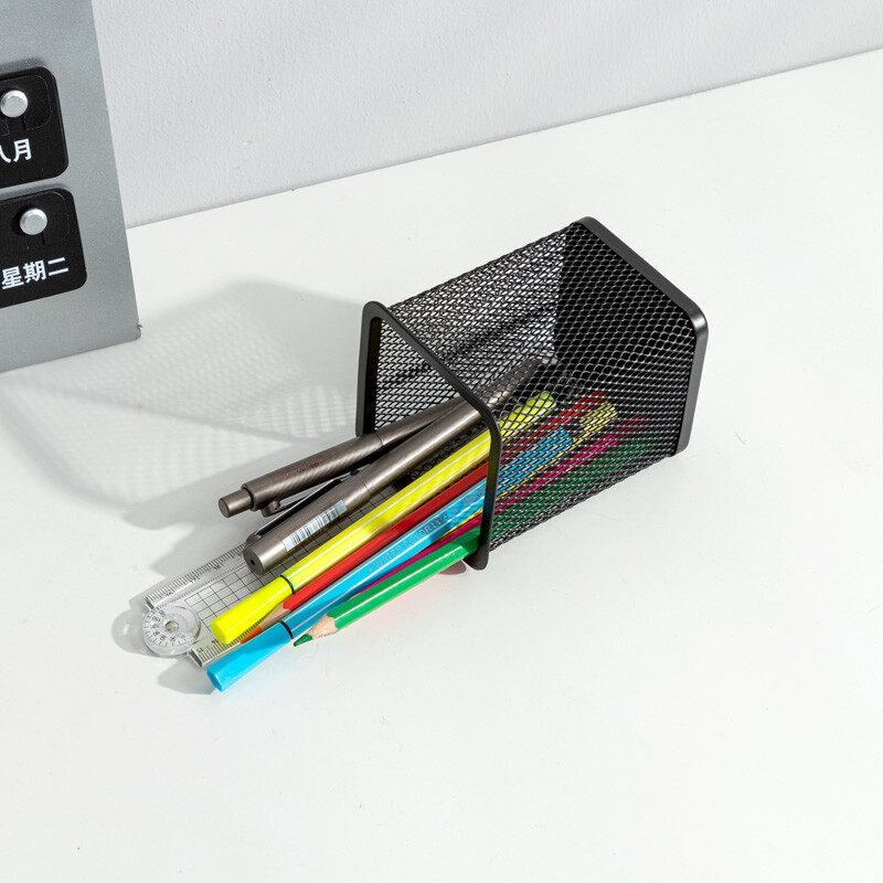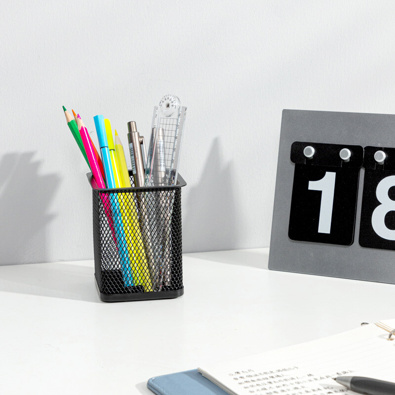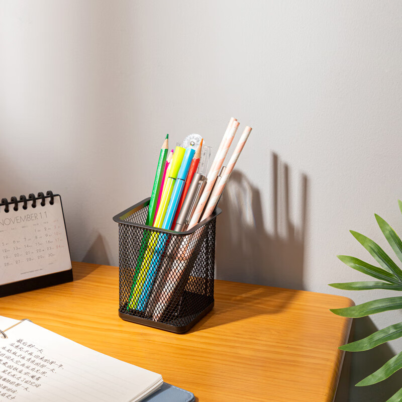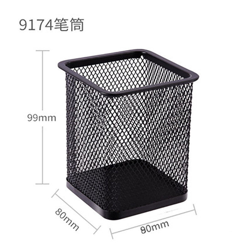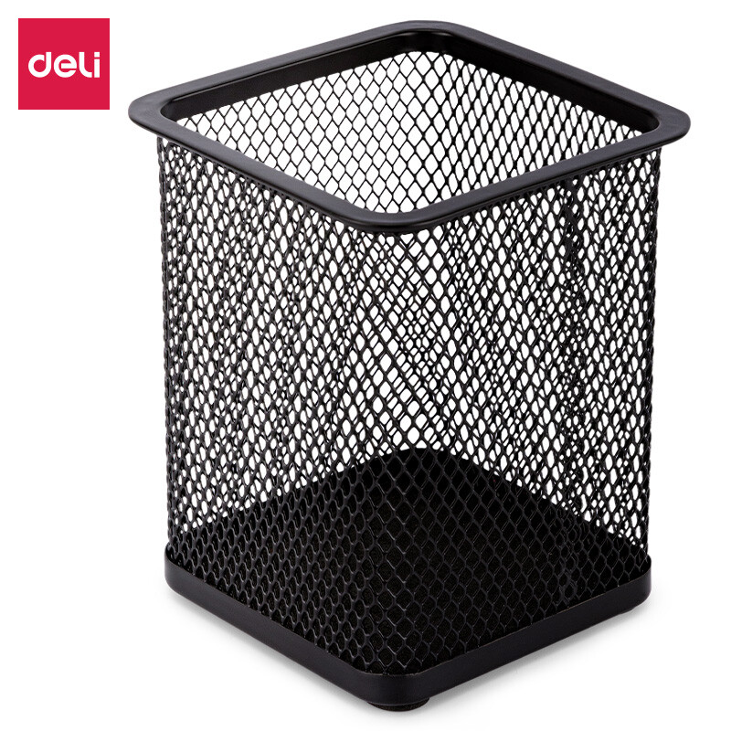 得力(deli) 金属网状笔筒 圆形方形简约创意 桌面收纳盒 办公用品 黑色 9174 金属方形笔筒