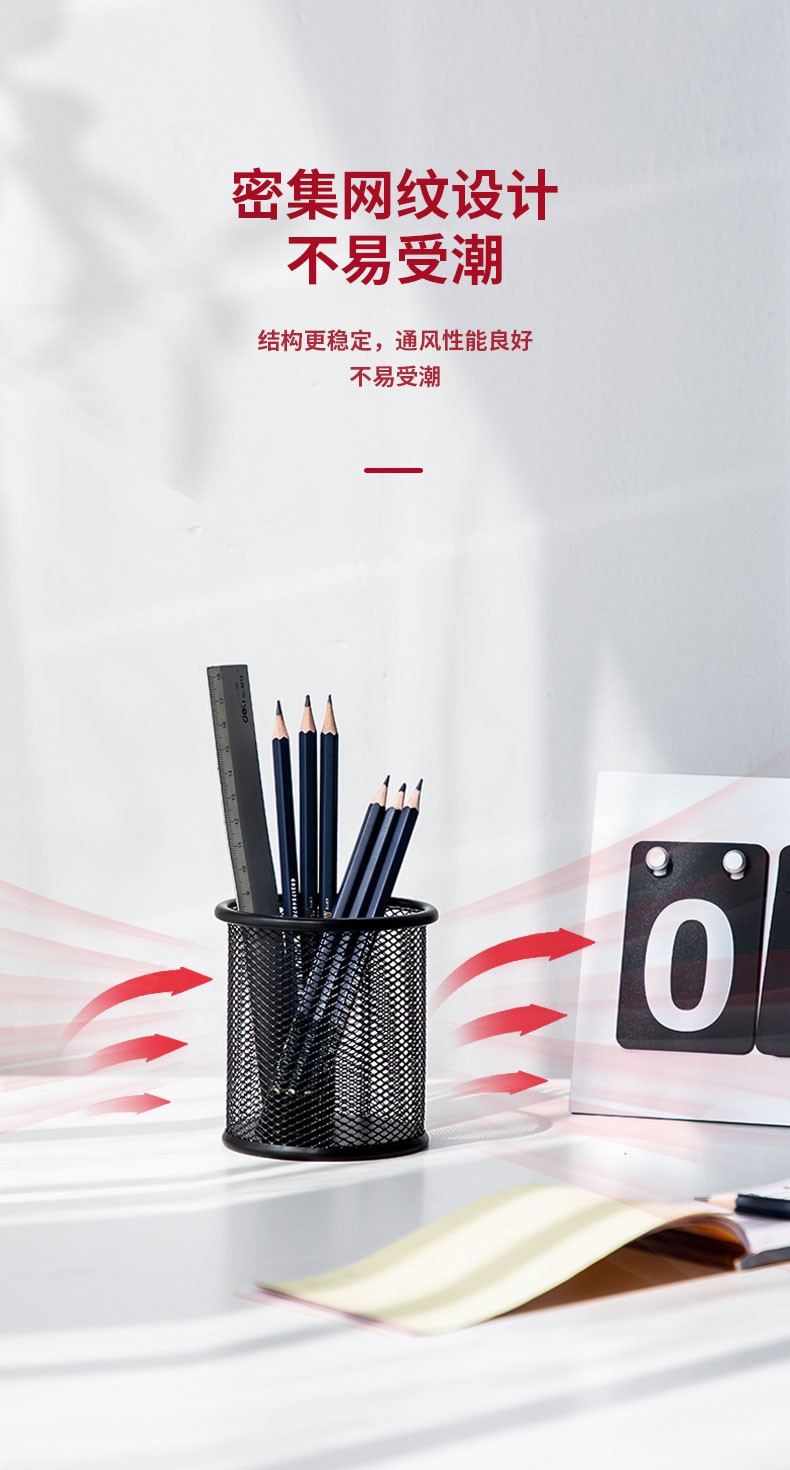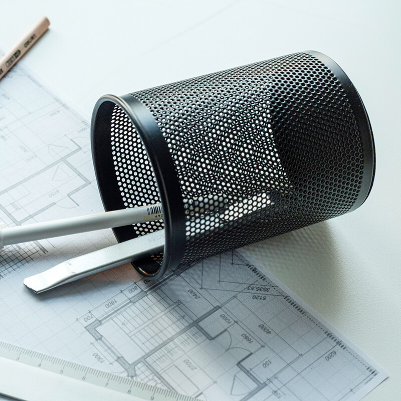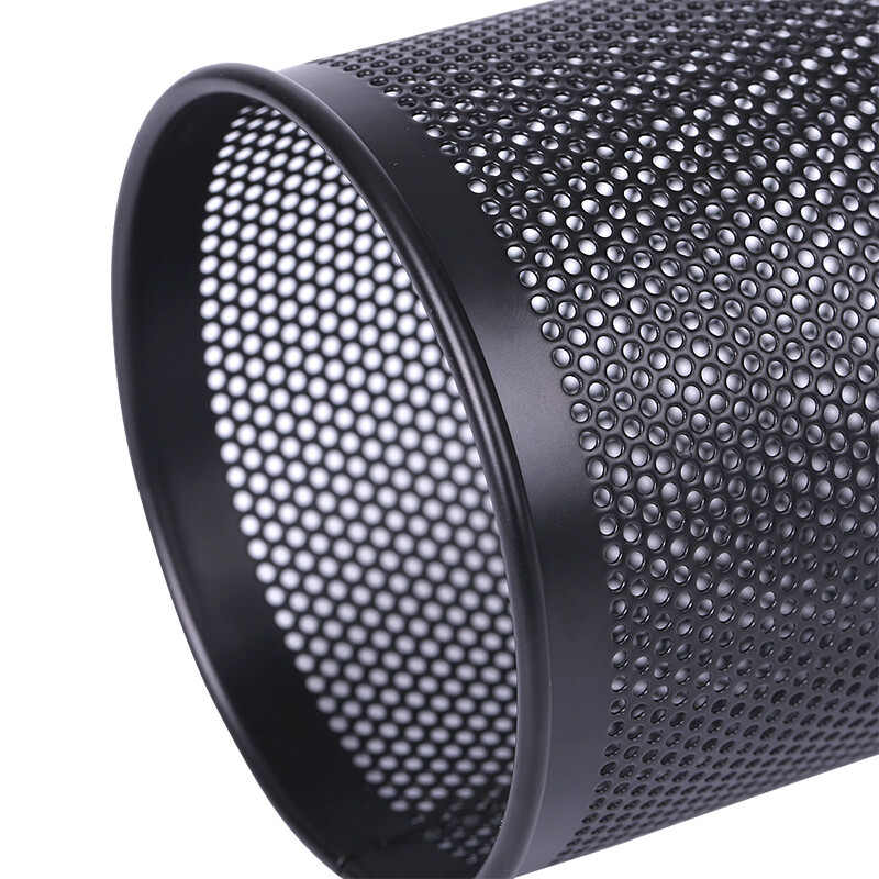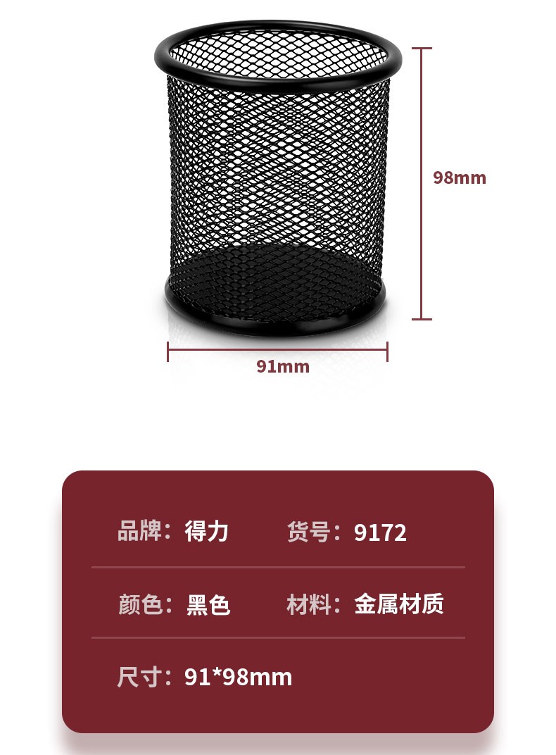得力(deli) 金属网状笔筒 圆形方形简约创意 桌面收纳盒 办公用品 黑色 909金属圆形笔筒(窄款)
