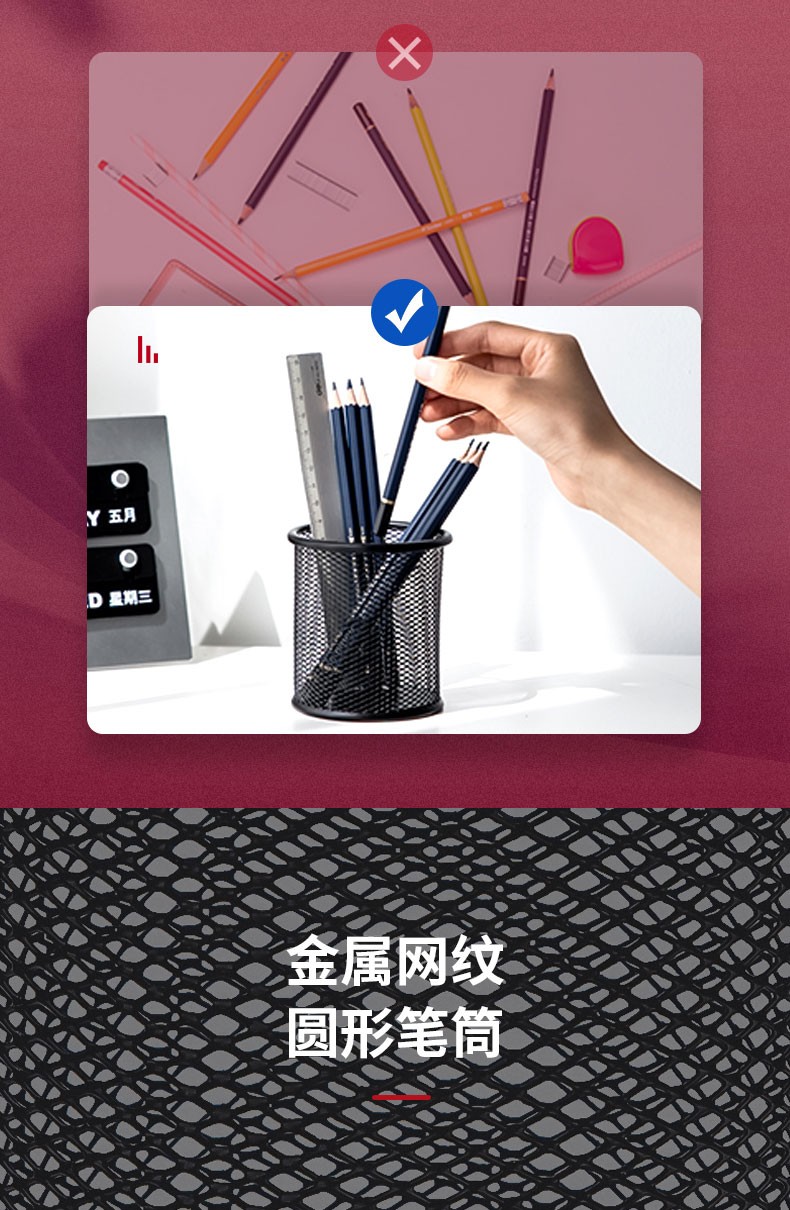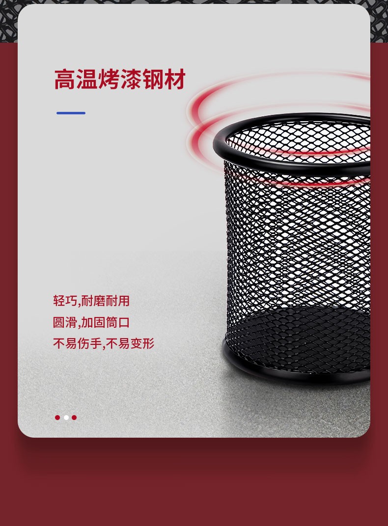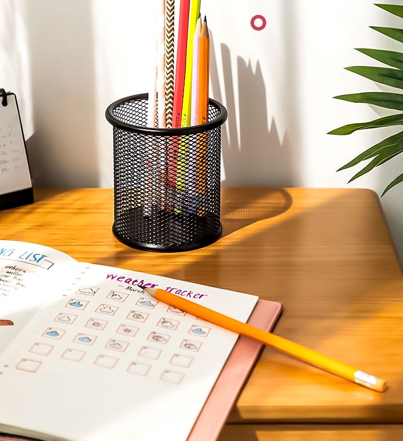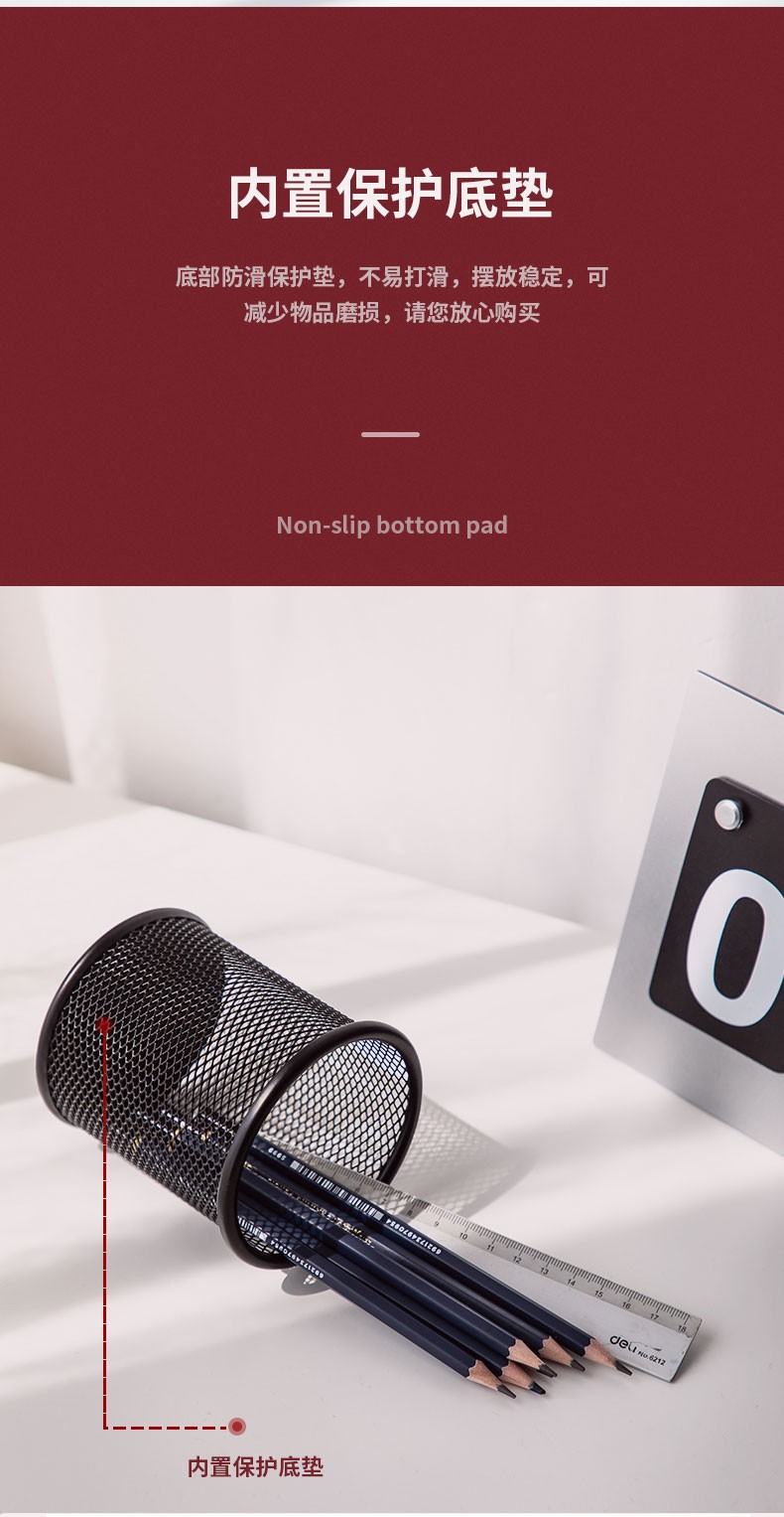 得力(deli) 金属网状笔筒 圆形方形简约创意 桌面收纳盒 办公用品 黑色 909金属圆形笔筒(窄款)