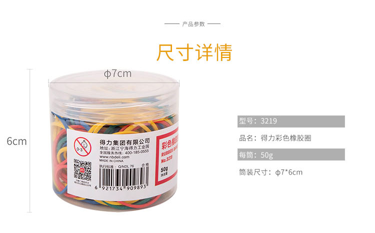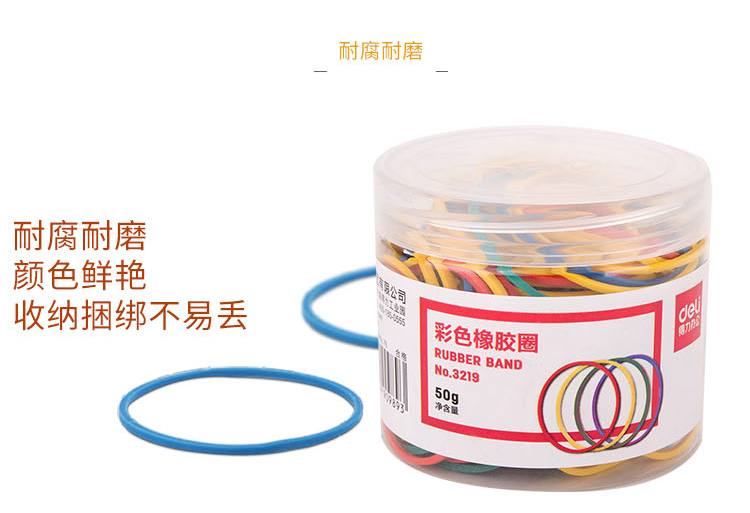 得力(deli)50g彩色弹力橡胶圈橡皮筋3219 单盒装