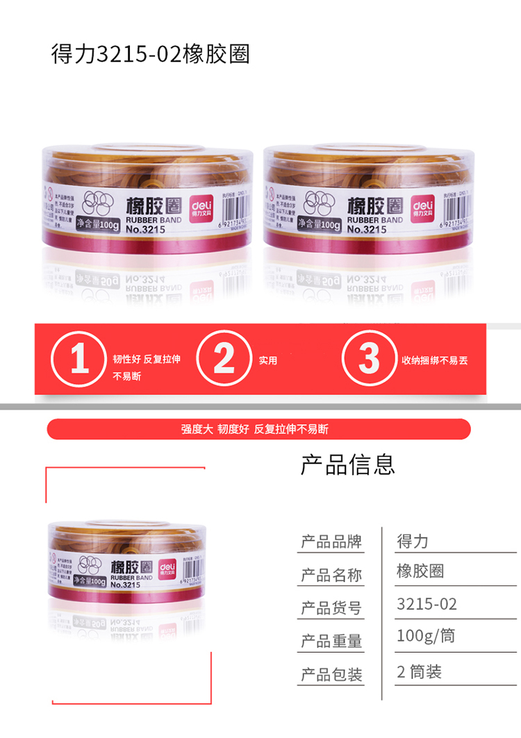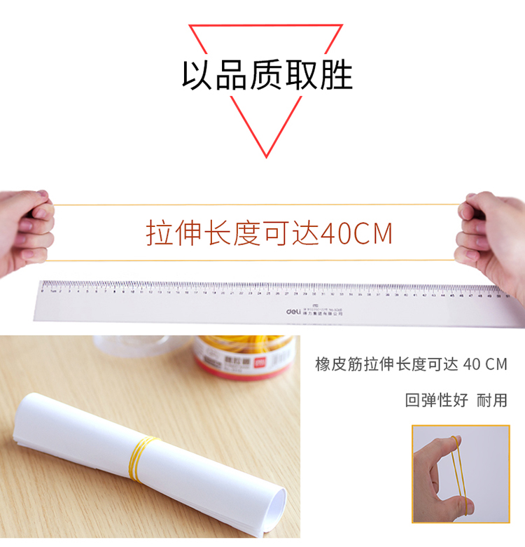 得力(deli)高韧性高强度橡皮筋橡胶圈 100g/盒 3215