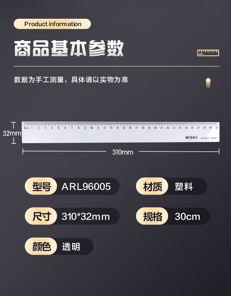 晨光(M&G)ARL96005 绘图办公直尺 30cm