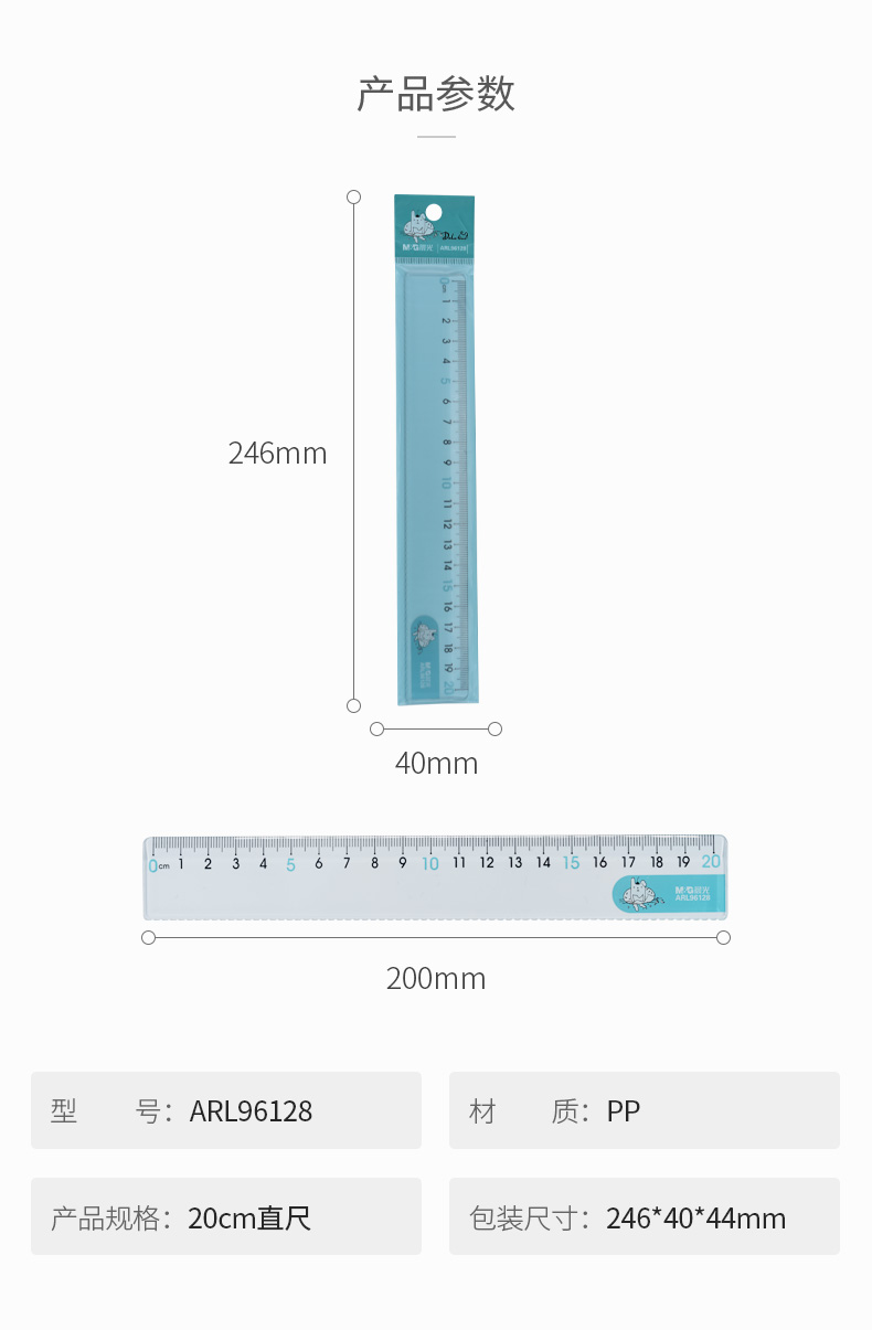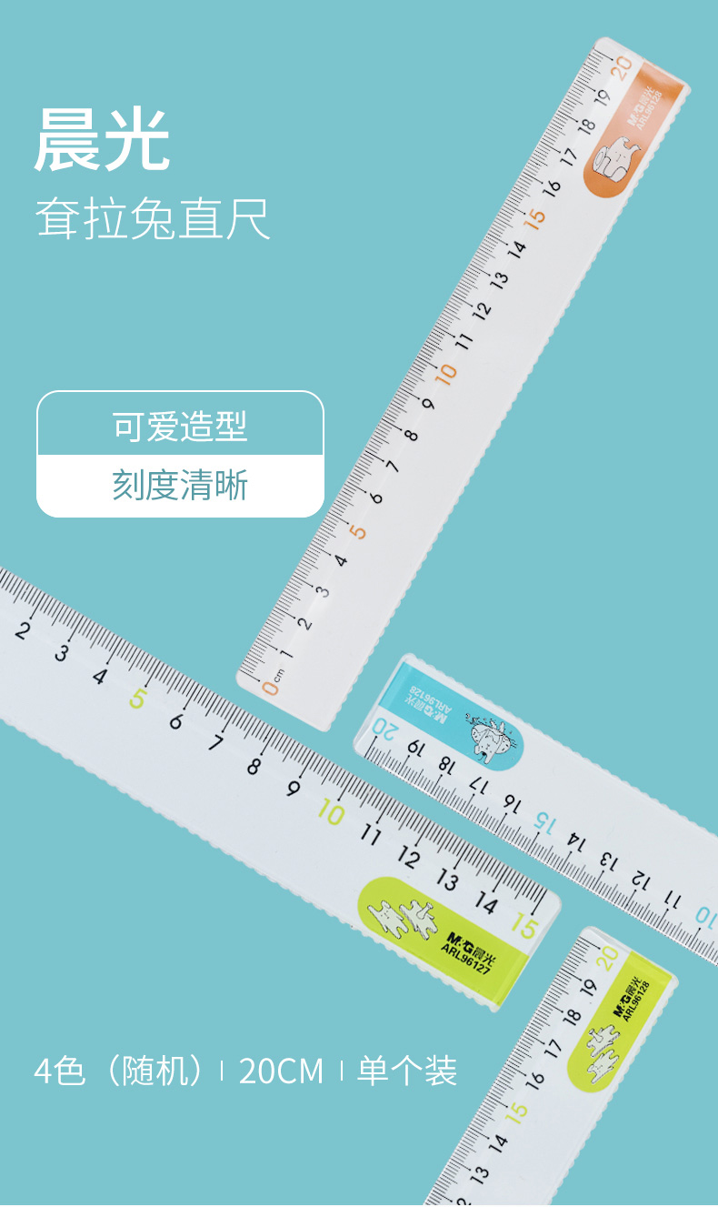 晨光(M&G)文具20cm学生直尺 考试绘图制图波浪边尺子 耷拉兔系列 开学文具 颜色随机ARL96128
