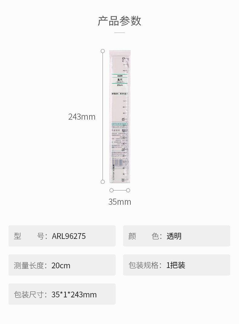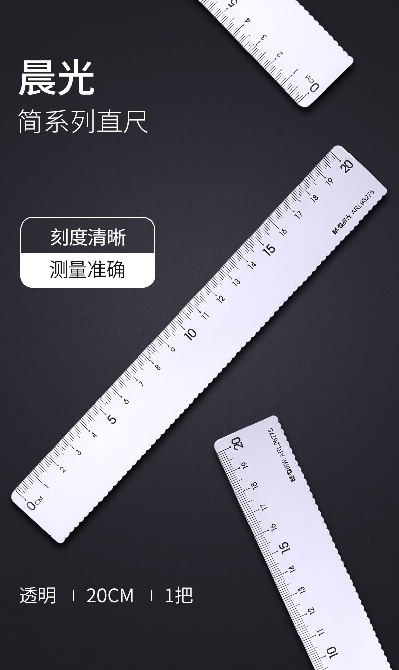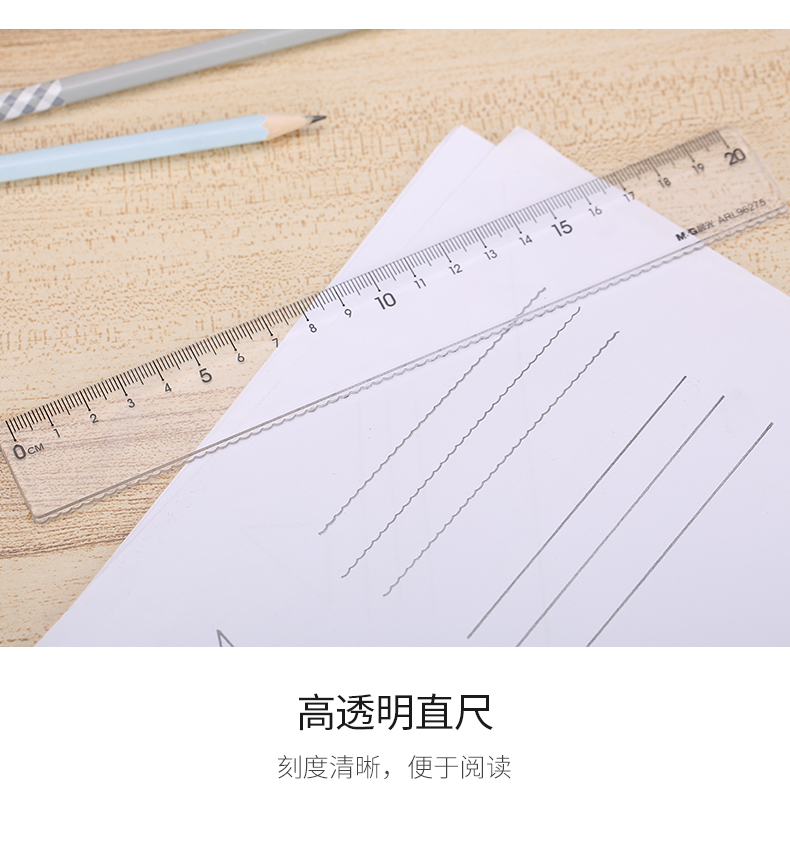 晨光(M&G)文具20cm透明直尺 考试绘图制图波浪边尺子 简系列开学文具 ARL96275