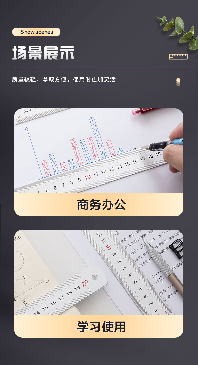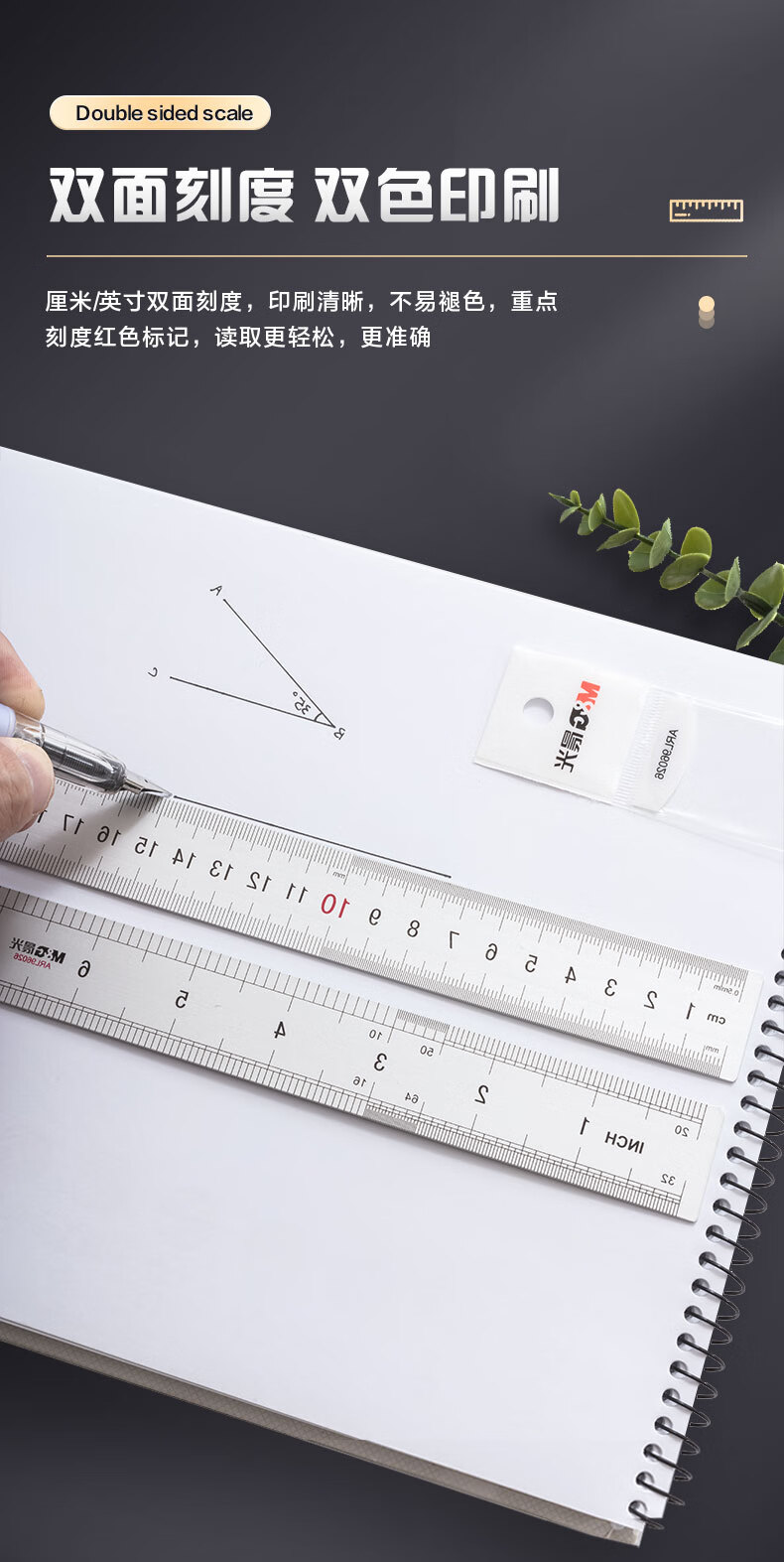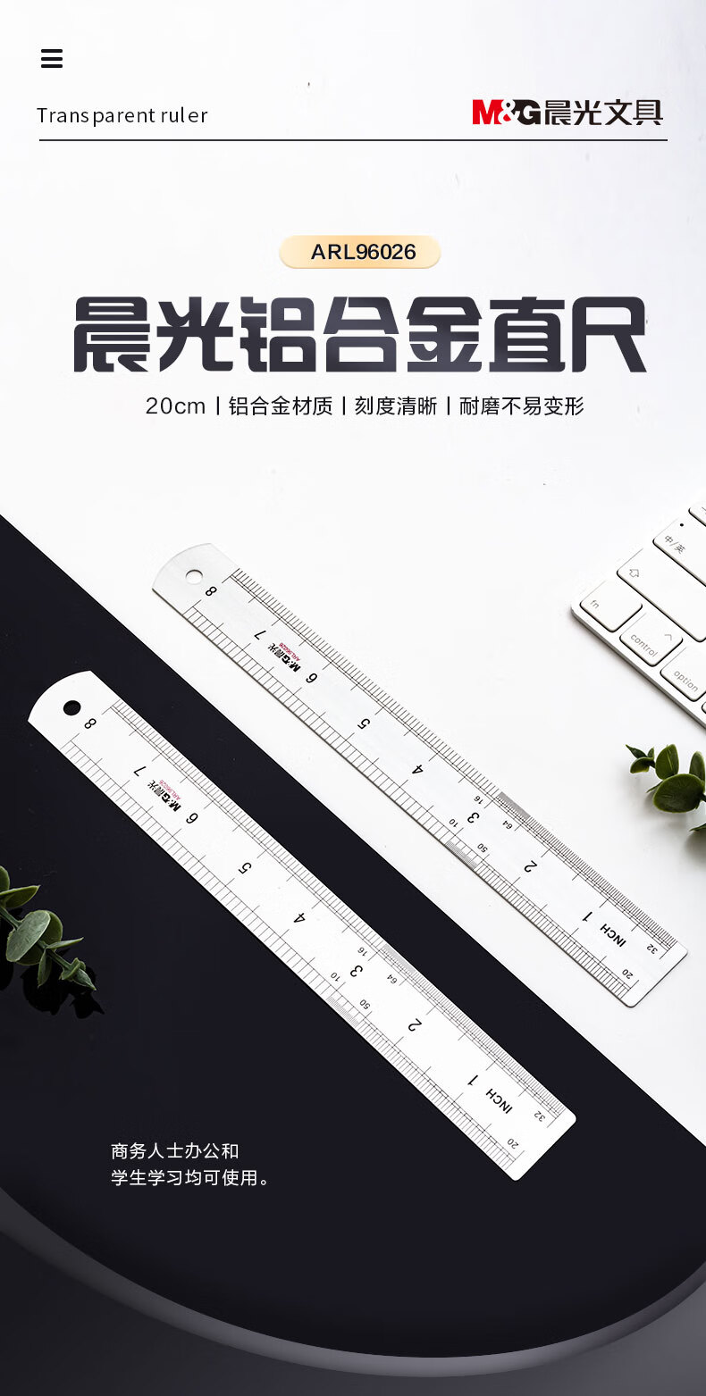 晨光(M&G)文具20cm铝合金直尺 测量绘图刻度尺子 双向刻度尺 办公用品 开学文具ARL96026