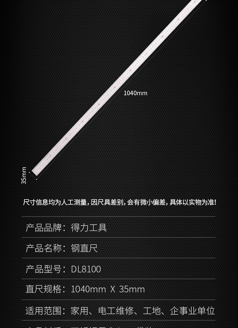 得力(deli)不锈钢直尺刻度尺公制刻度绘图钢尺100cm DL8100