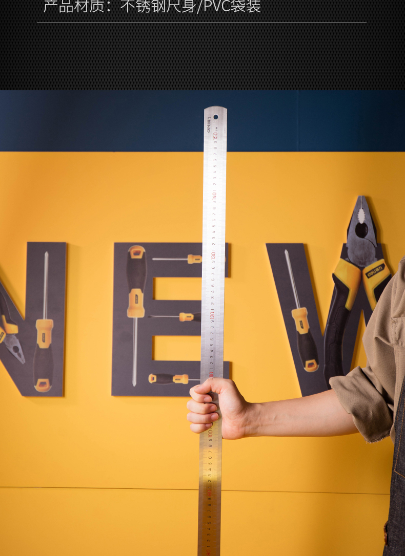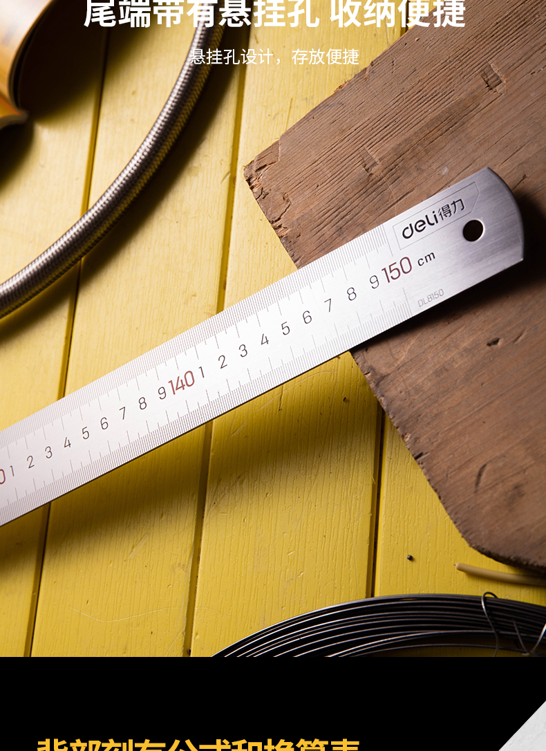 得力(deli)不锈钢直尺刻度尺公制刻度绘图钢尺150cm DL8150