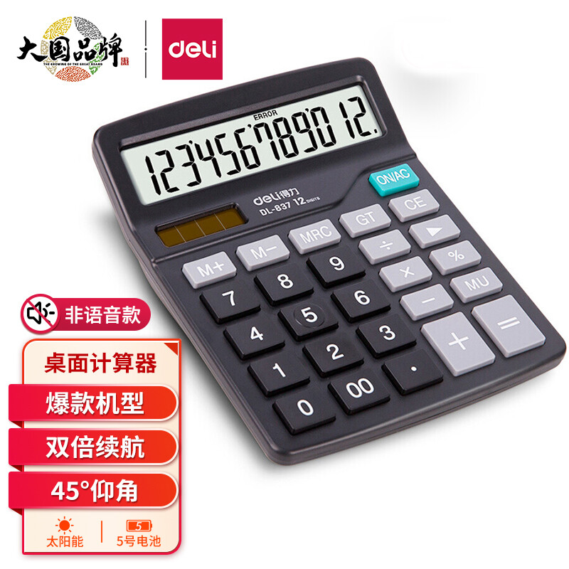 得力837计算器 12位计算机 黑色