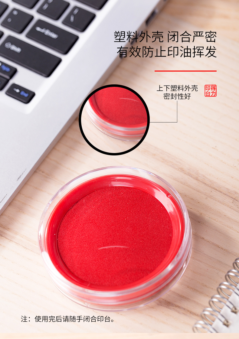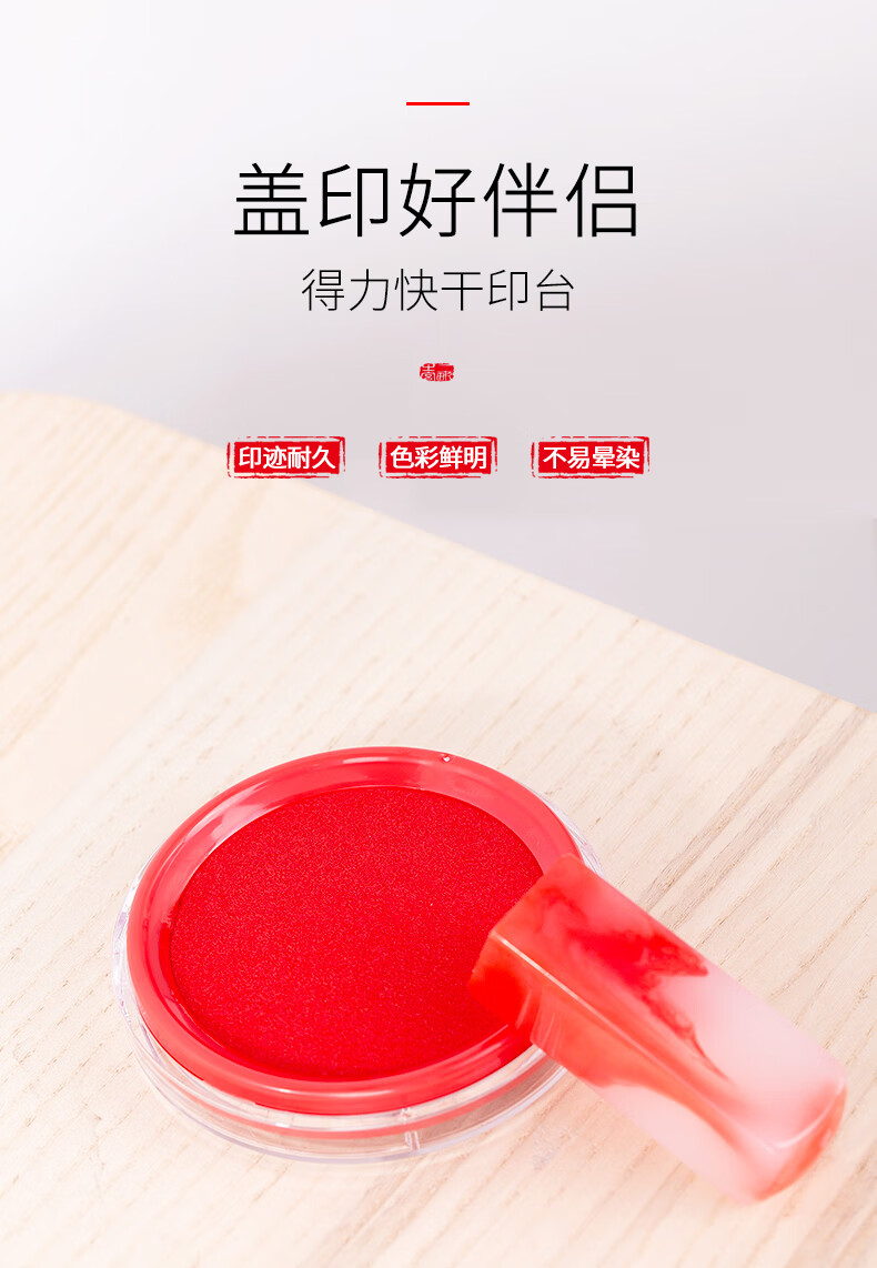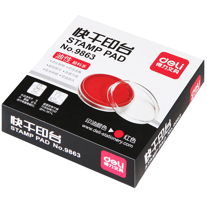 得力(deli)圆形透明外壳快干印台 9863红色印台