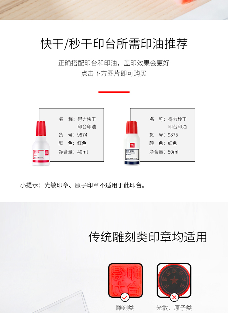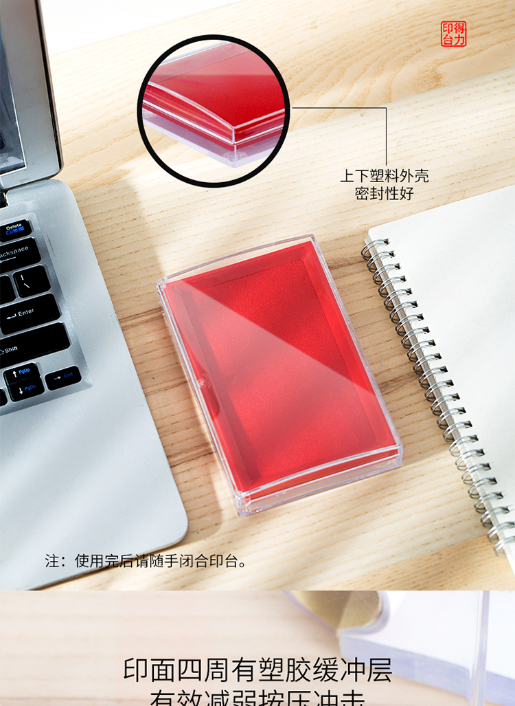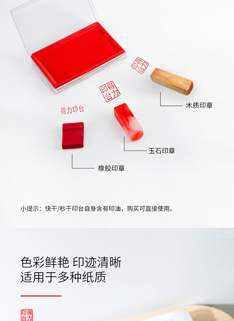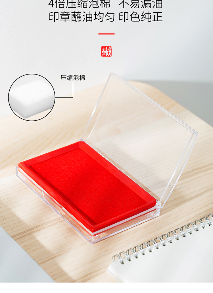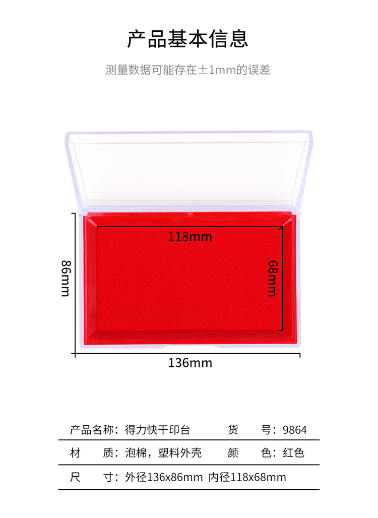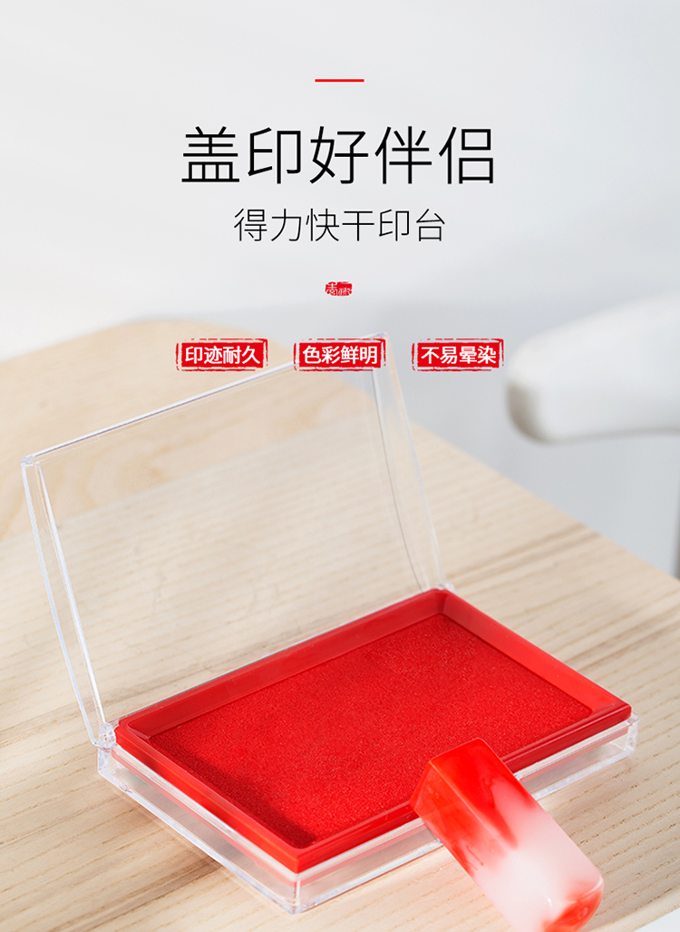 得力(deli)137*88mm透明外壳方形快干印台印泥 办公用品 红色9864