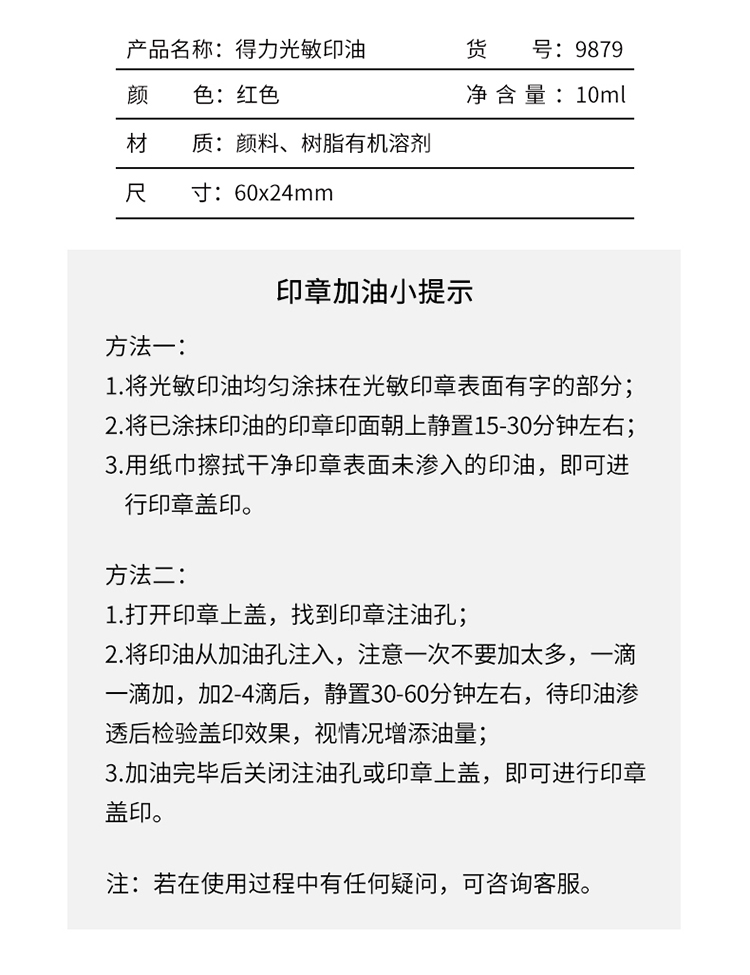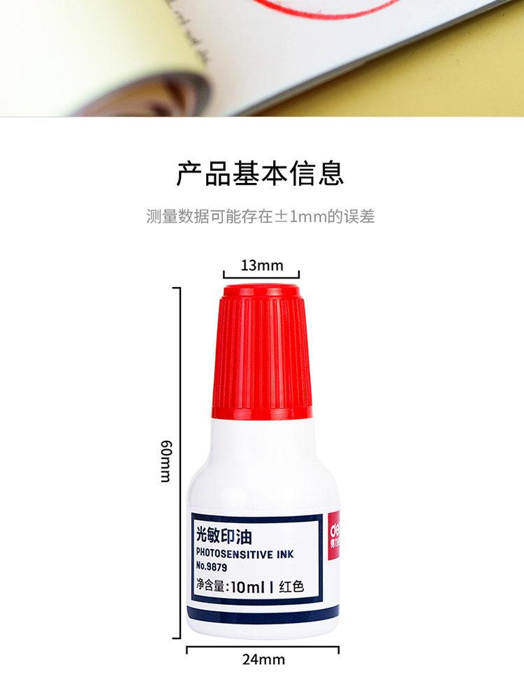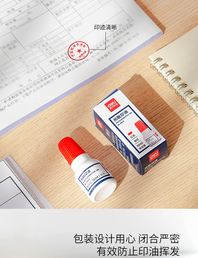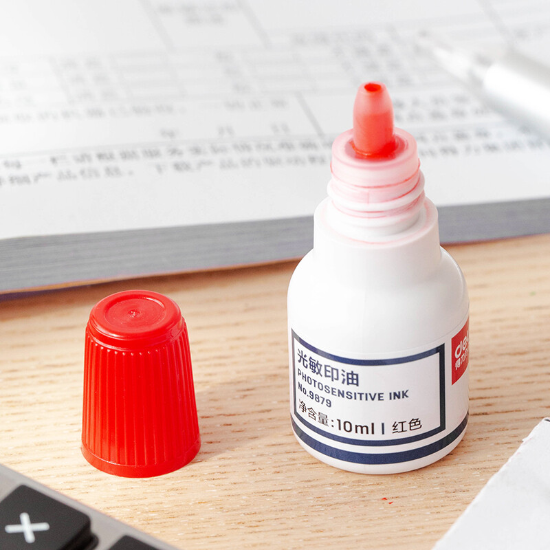 得力(deli)10ml财务印章光敏印油 红色 9879