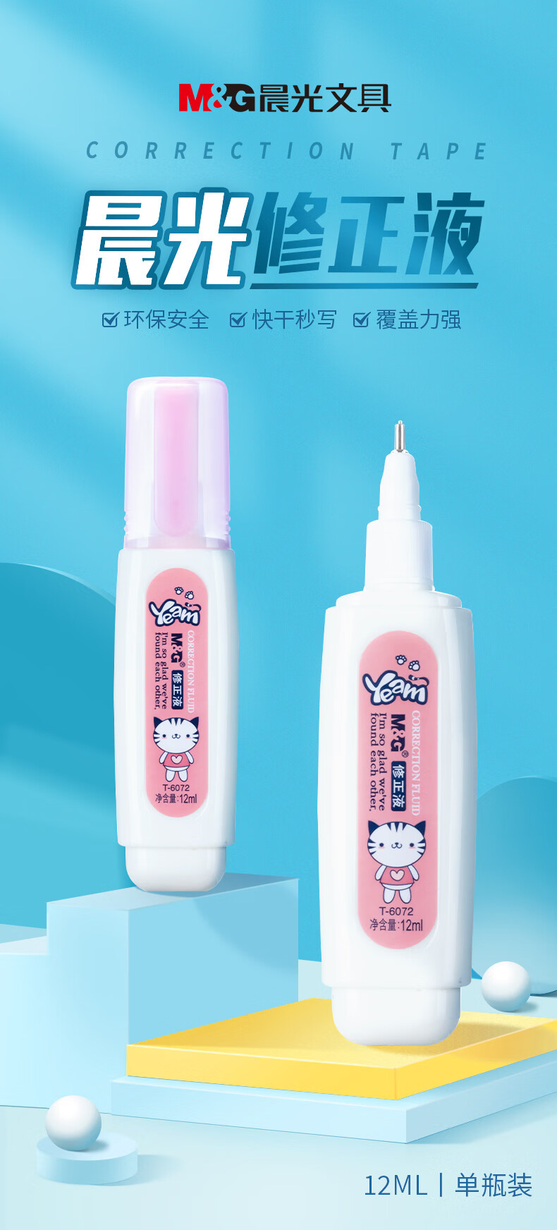晨光(M&G)文具12ml修正液 学生涂改液 改正液 修正笔 单瓶装T6072