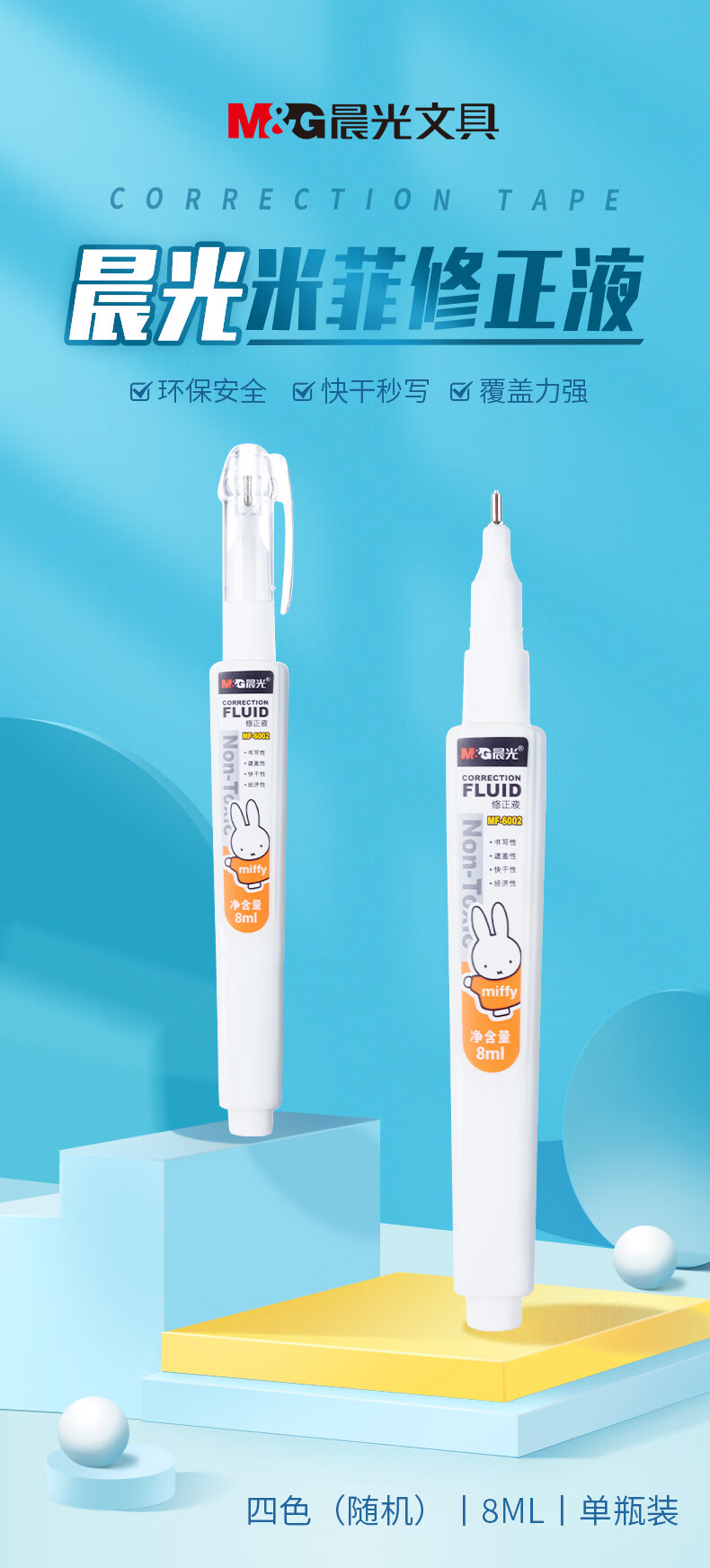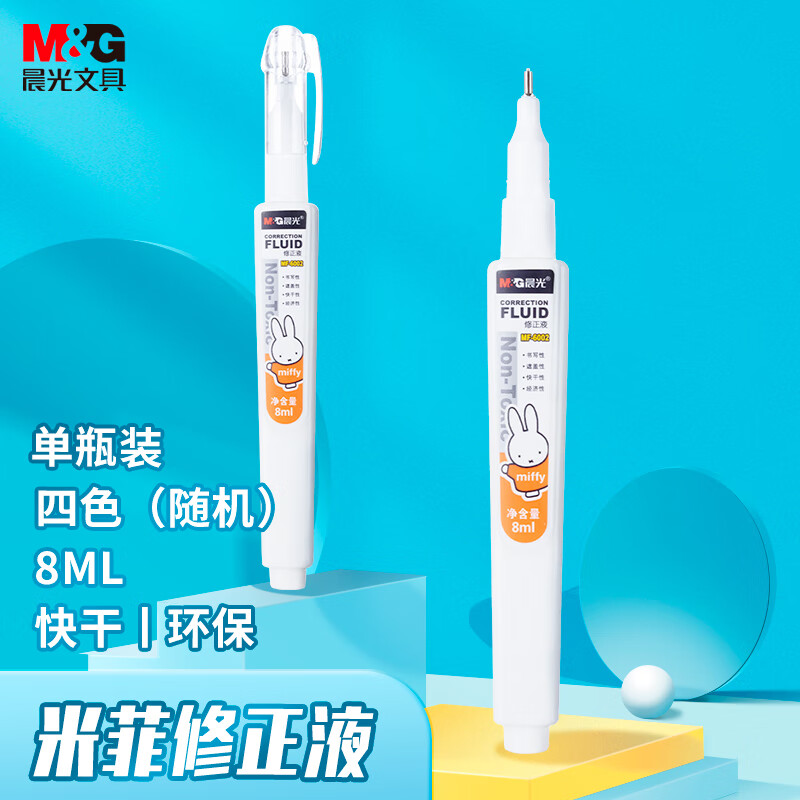 晨光(M&G)文具8ml便携修正液 学生开学涂改液 改正液 米菲系列修正笔 单瓶装颜色随机MF6002