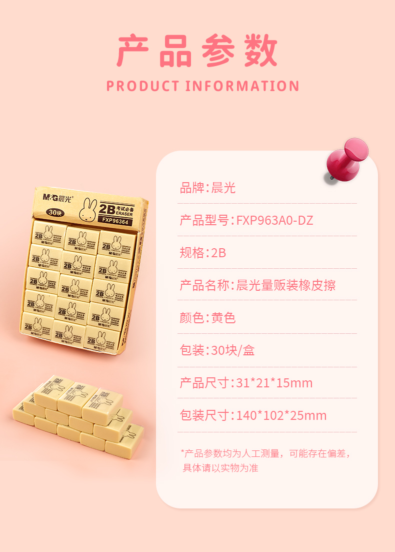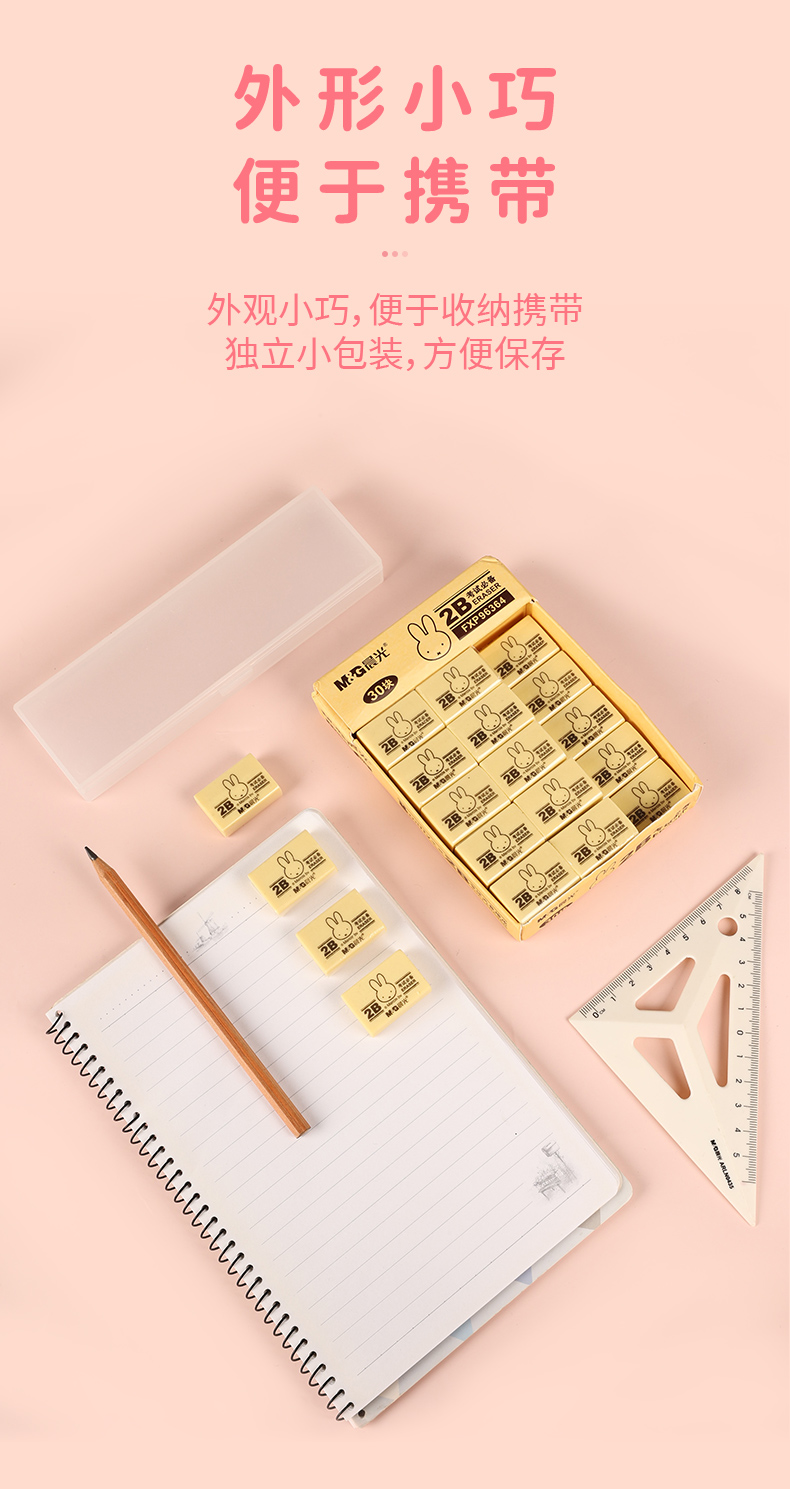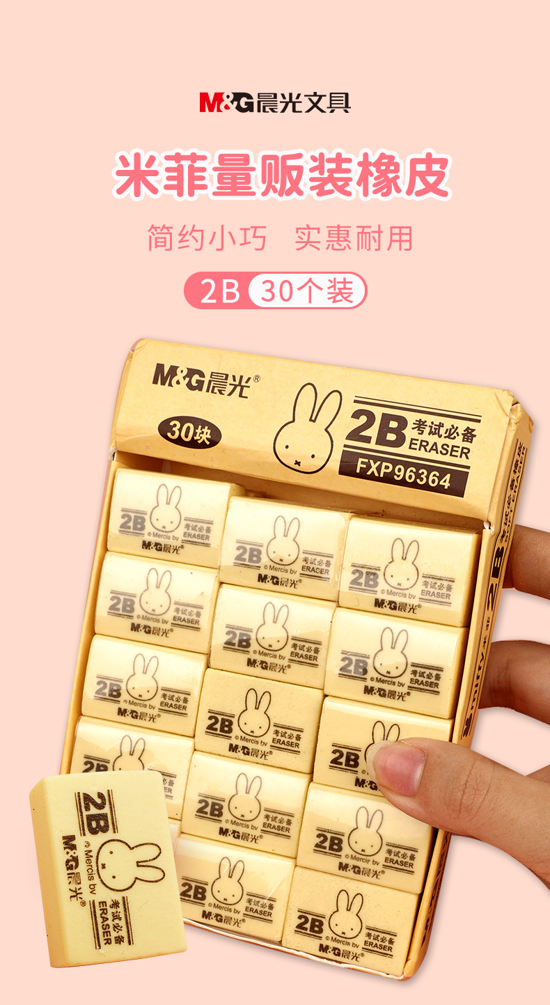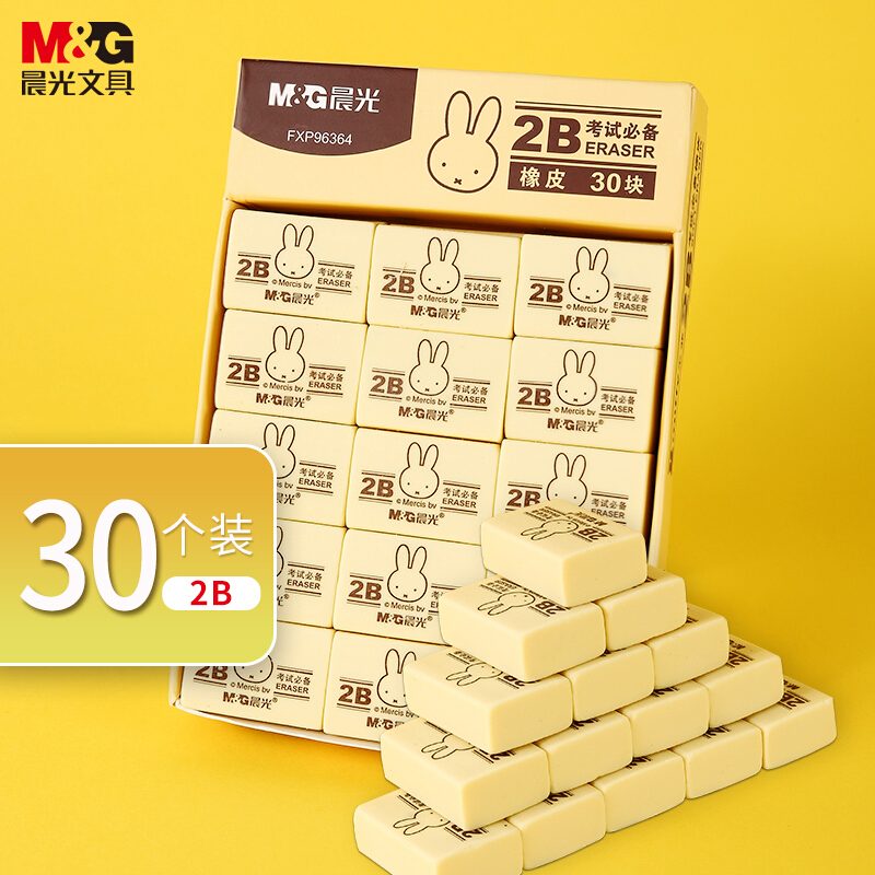 晨光(M&G)文具2B黄色小号橡皮 学生美术考试绘图橡皮擦 30块装 开学文具FXP96364