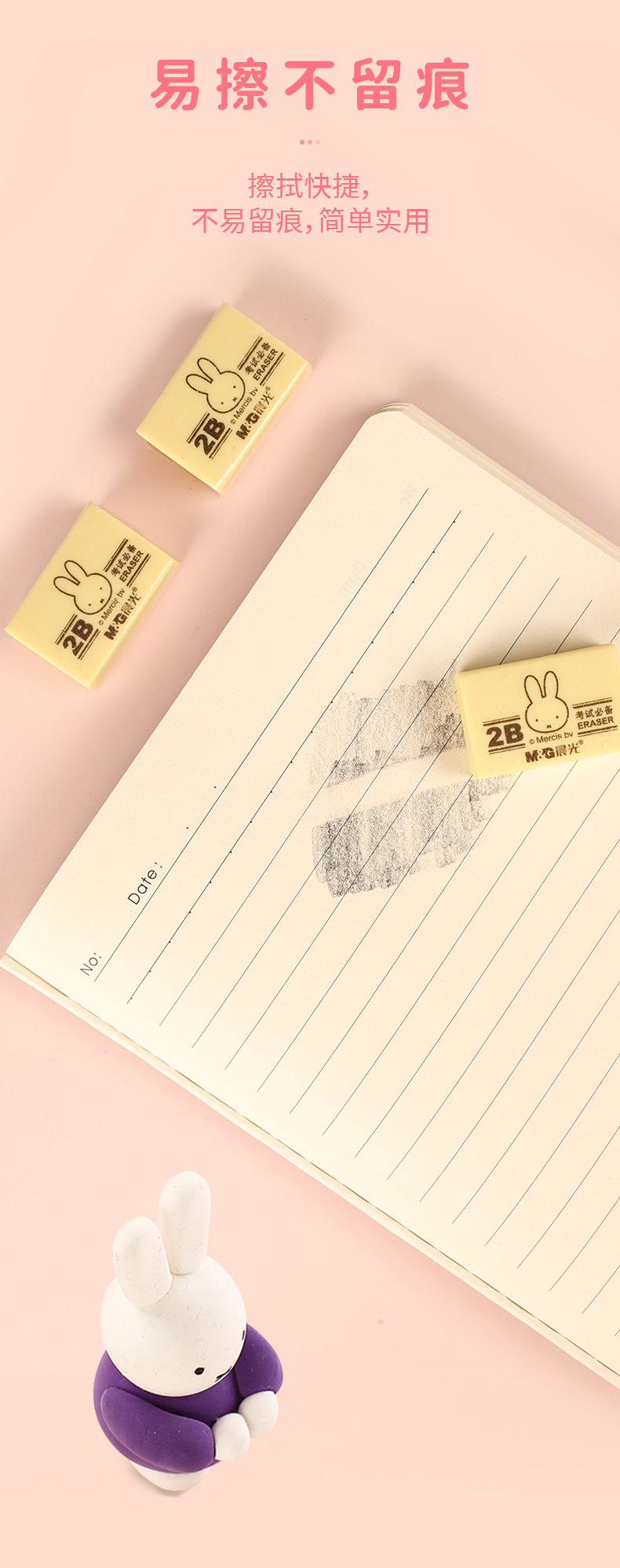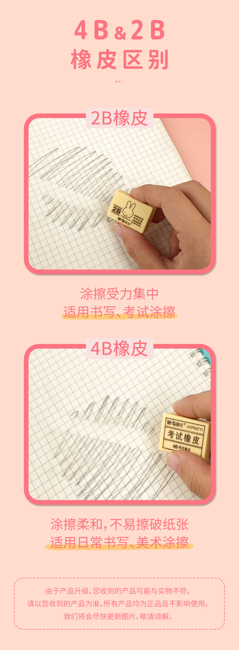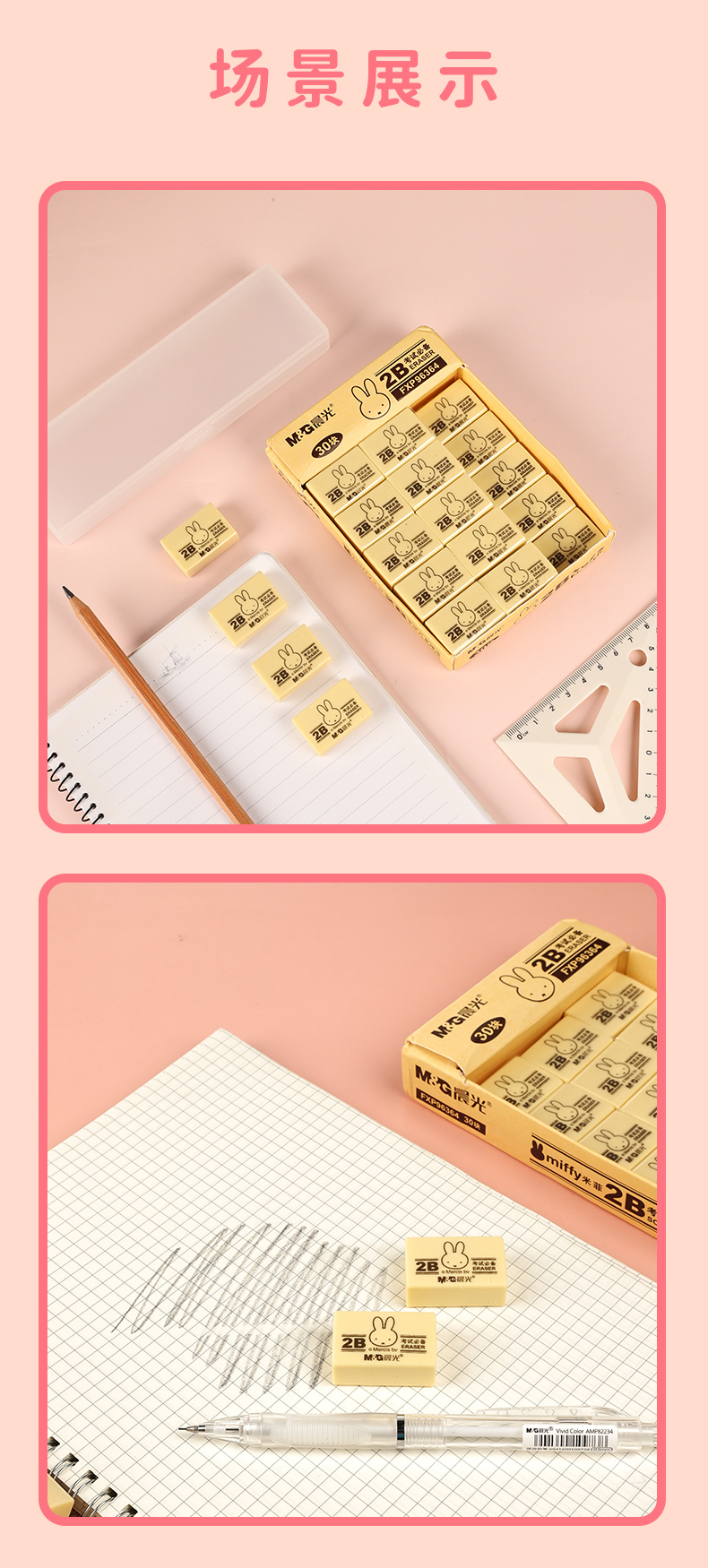 晨光(M&G)文具2B黄色小号橡皮 学生美术考试绘图橡皮擦 30块装 开学文具FXP96364
