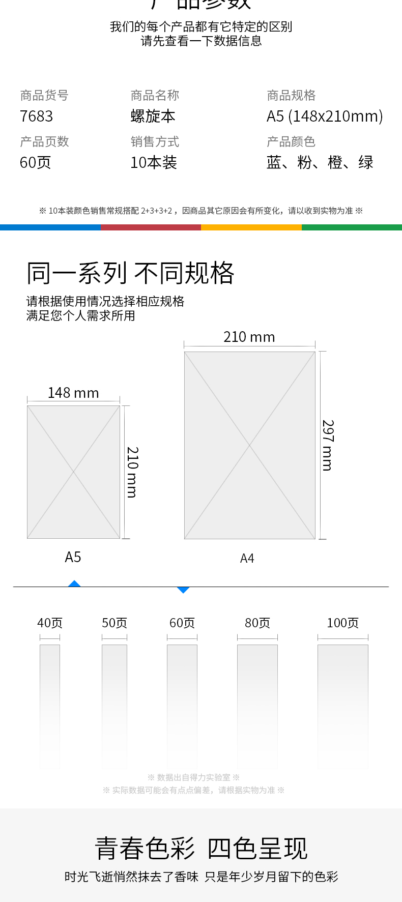 得力(deli)10本A5/60页螺旋装订本软抄本记事本笔记本子 7683