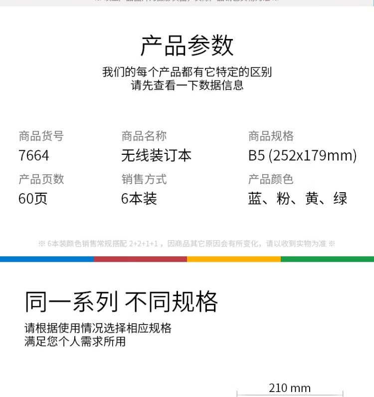 得力(deli) 6本B5/60张无线装订软抄本记事本 工作笔记本子文具办公用品 7664