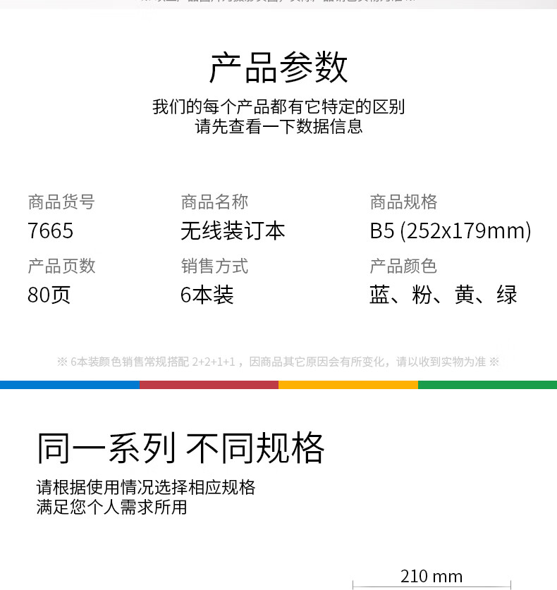 得力(deli) 6本B5/80张无线装订软抄本记事本 工作笔记本子文具办公用品 7665